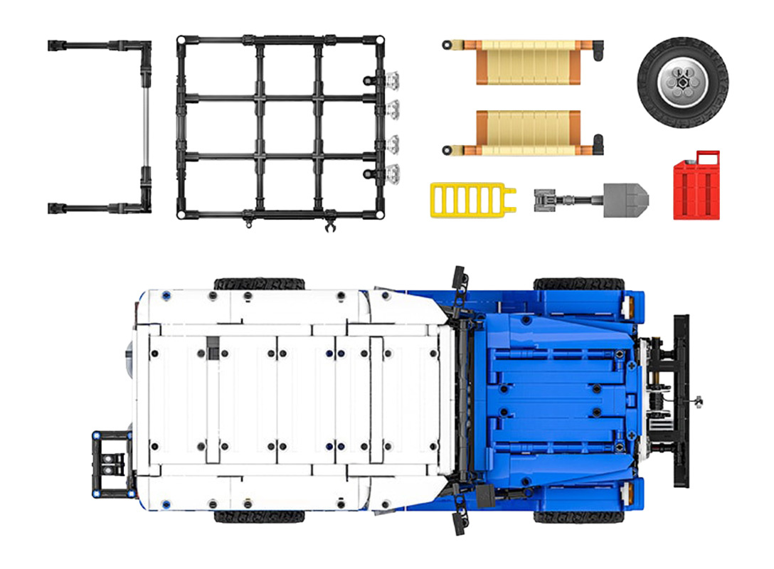 Vysoce kvalitní stavební kostky pro děti od osmi let. Sada se skládá z 2101 prvků, ze kterých lze postavit modré terénní vozidlo v měřítku 1:12. Tento skvělý model auta jistě upoutá pozornost svými detaily. Vozidlo má otevírací boční dveře, kufr a kapotu.