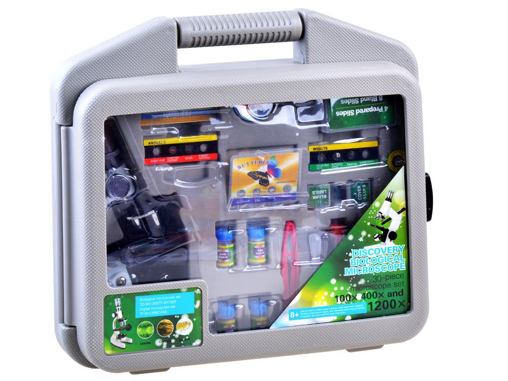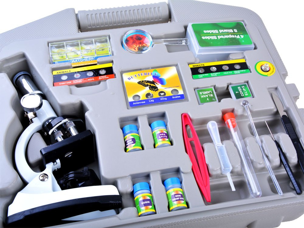 Objektivy poskytují zvětšení 100x/600x/1200x. Rám mikroskopu je vyroben z kovu a funguje na 2 baterie AA (nejsou součástí balení). Sada je vyrobena velmi pečlivě a přesně. Mikroskop má vestavěnou vyměnitelnou žárovku, která osvětluje prohlížené vzorky. Dokonalá sada pro malé vědce. S tímto mikroskopem zažije vaše dítě nezapomenutelné hodiny plné nových objevů.