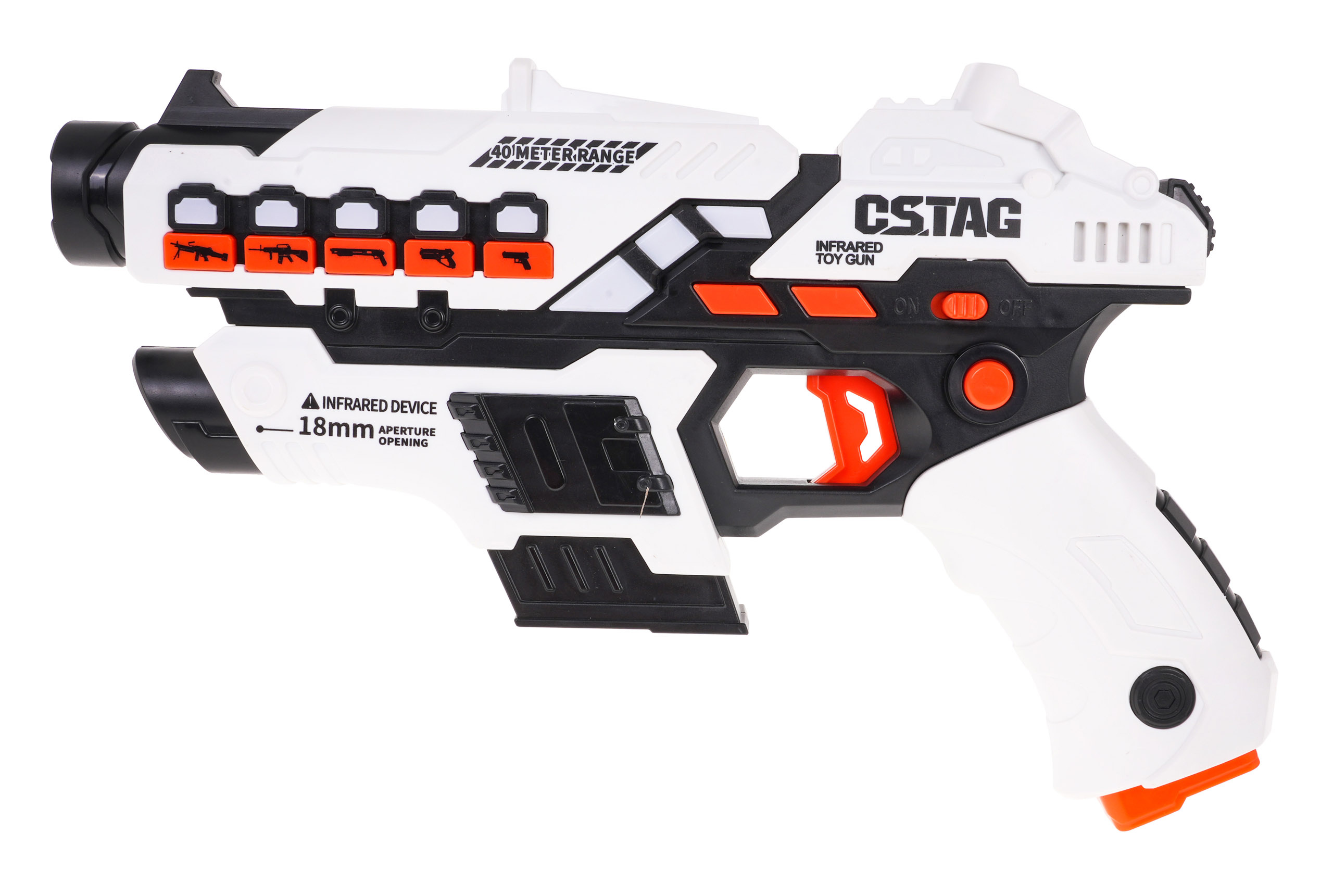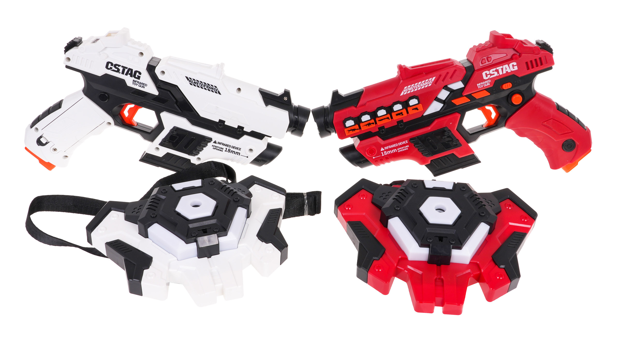 Sada Laserové zbraně a štíty s funkcí kouře je určena pro děti od 3 let. Sada obsahuje 2 laserové zbraně a 2 terče. Na výběr je pět režimů střelby a můžeme sestavit dva až čtyři týmy. Zbraně a terče pracují s infračerveným zářením, infračervené vysílání signálu použité v této sadě je pro dítě bezpečné a nezpůsobuje poškození očí. Každá zbraň má počítadlo životů, po každém přesném výstřelu a zásahu protivníka jeho zbraň a vesta zapípají a zavibrují. Vibrace a zvuky střelby poskytnou každému uživateli úžasný zážitek. Po vyčerpání zásoby "životů" světla na zbrani zhasnou a ze štítu začne vycházet kouř (nezapomeňte předtím štít naplnit čištěnou vodou). Zbraně nejsou těžké a snadno se drží v ruce. Dosah vedené bitvy by neměl být větší než 40 metrů. Zbraně jsou napájeny 3 bateriemi AA 1,5 V (každá zbraň), vesty jsou napájeny 3 bateriemi AA 1,5 V (každá vesta).