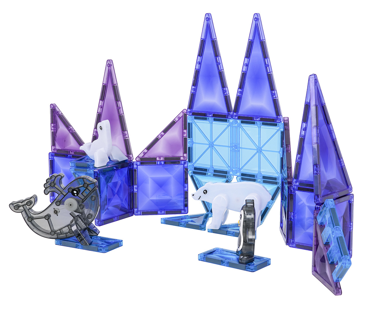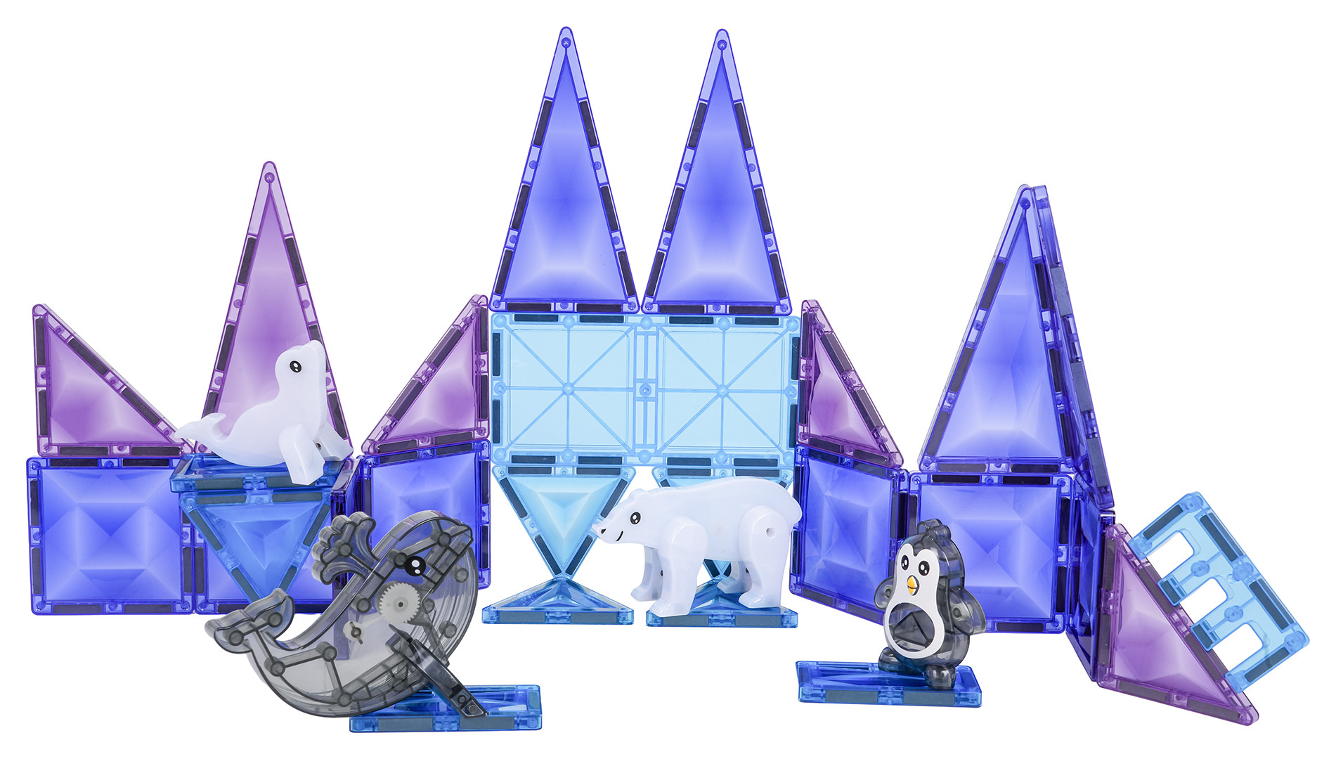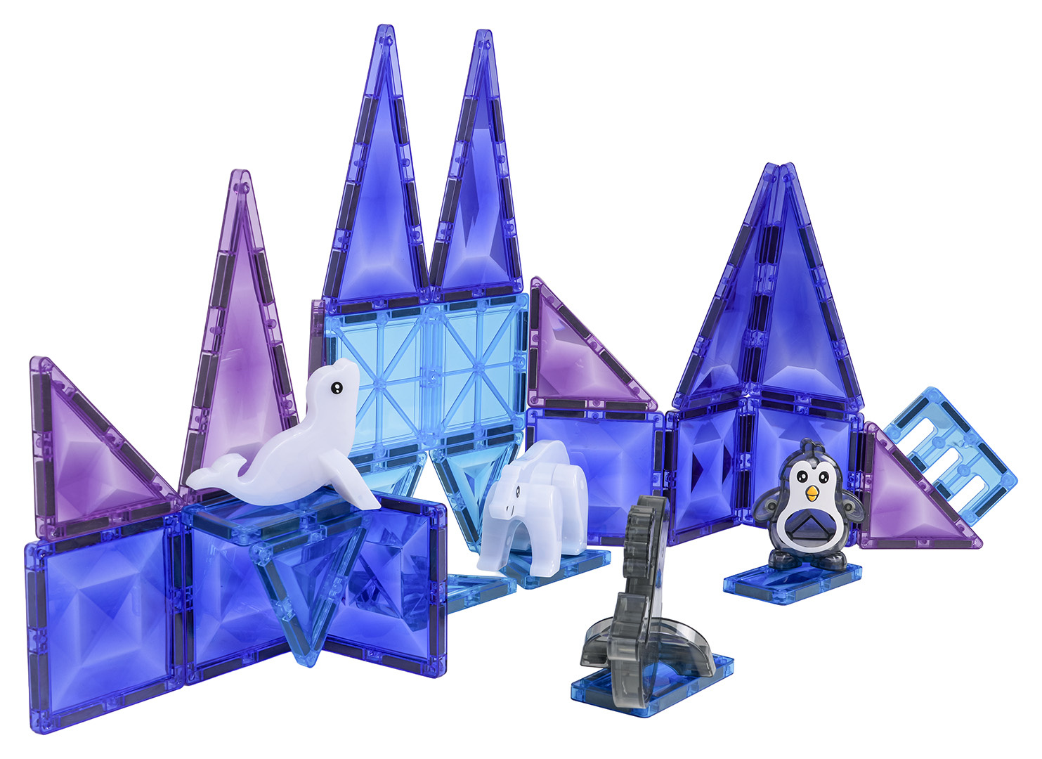 | Sada magnetických kostek s zimní tematikou pro děti od tří let. Sada se skládá z 30 prvků, magnetických kostek a magnetických postaviček delfína, tučňáka, tuleně a ledního medvěda. Magnetické kostky jsou vyrobeny z odolného plastu. Spojují se pomocí neodymových magnetů. Můžeme je spojovat v různých konfiguracích a pod různými úhly, vytvářejíc 3D konstrukce. Postavy mají pohyblivé prvky, delfínek otevírá tlamu, medvídek může pohybovat nohama, zatímco tučňák zvedá a spouští tlapky. Skládání kostek pozitivně ovlivňuje rozvoj kreativity, učí trpělivosti a soustředění.