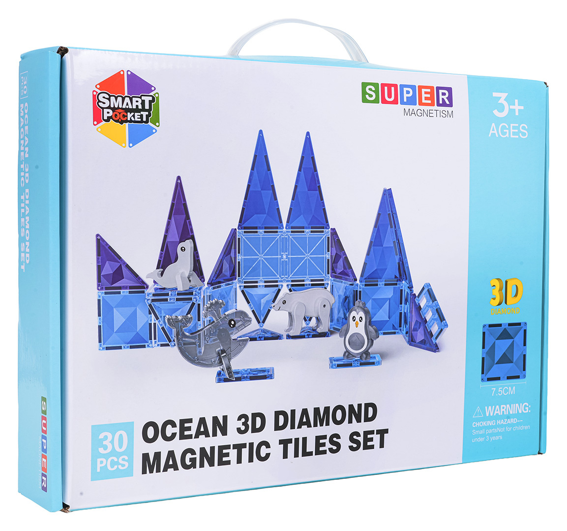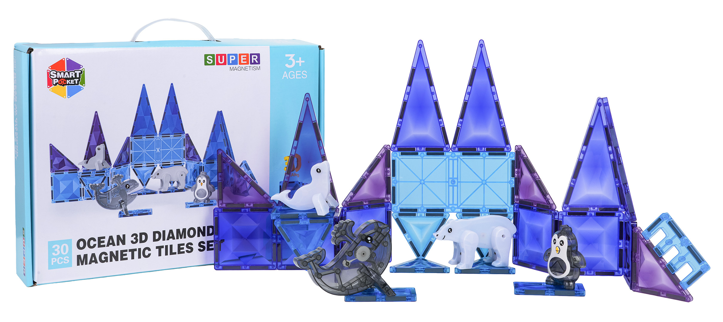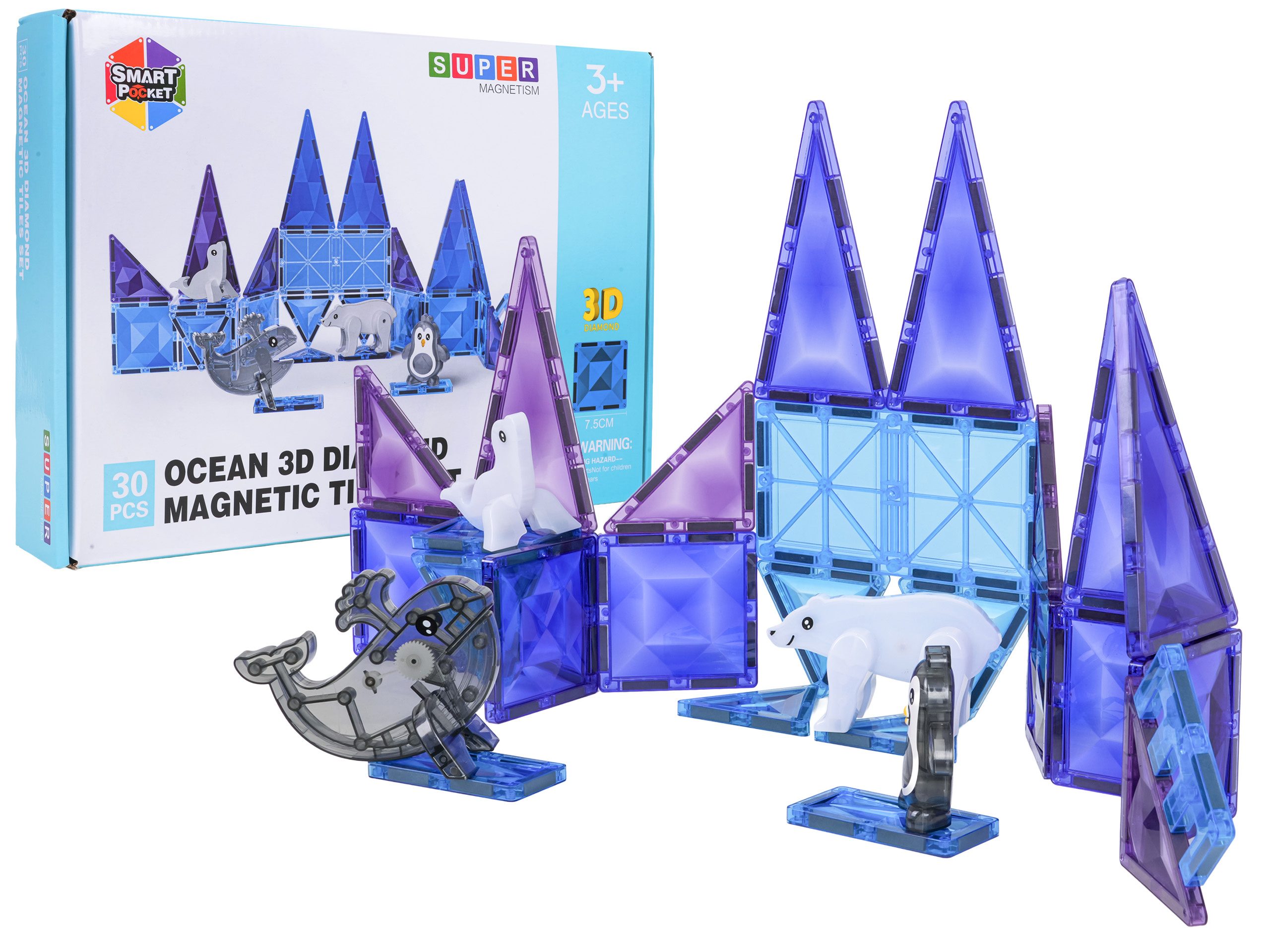 | Sada magnetických kostek s zimní tematikou pro děti od tří let. Sada se skládá z 30 prvků, magnetických kostek a magnetických postaviček delfína, tučňáka, tuleně a ledního medvěda. Magnetické kostky jsou vyrobeny z odolného plastu. Spojují se pomocí neodymových magnetů. Můžeme je spojovat v různých konfiguracích a pod různými úhly, vytvářejíc 3D konstrukce. Postavy mají pohyblivé prvky, delfínek otevírá tlamu, medvídek může pohybovat nohama, zatímco tučňák zvedá a spouští tlapky. Skládání kostek pozitivně ovlivňuje rozvoj kreativity, učí trpělivosti a soustředění.