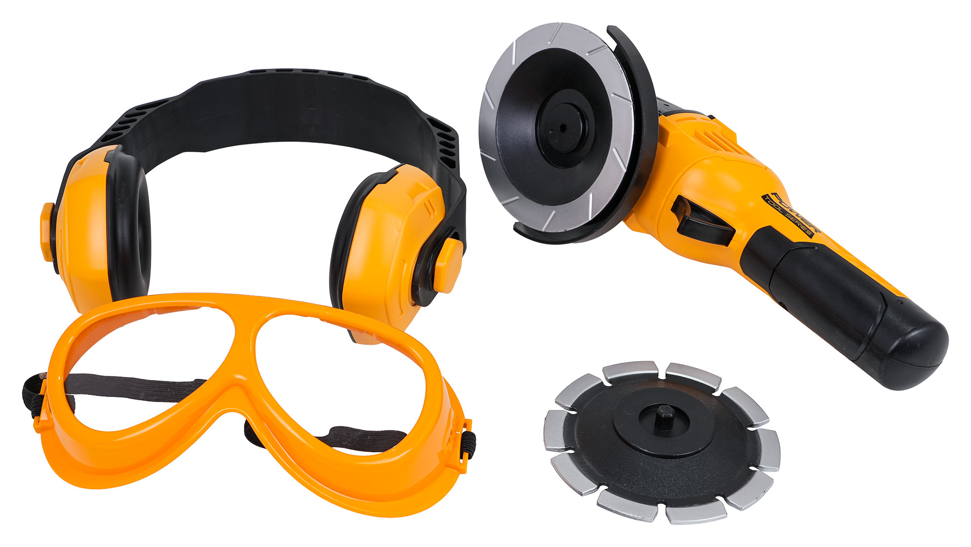 Sada malého kutila s bruskou, ochrannými brýlemi a protihlukovými sluchátky pro děti od tří let. Sada byla vyrobena s důrazem na detaily, hračka bruska připomíná skutečnou. Po stisknutí tlačítka se kotouč otáčí, můžeme také měnit kotouč v závislosti na materiálu, na kterém pracujeme. Nástroj nevyžaduje baterie, funguje manuálně.