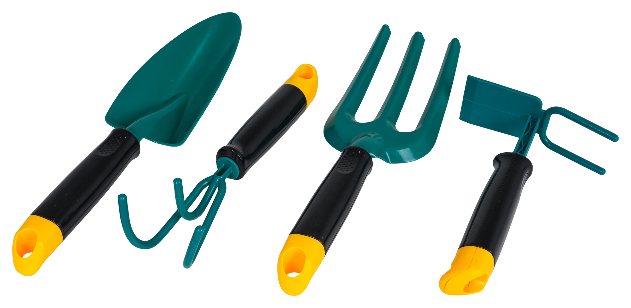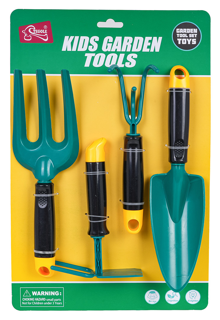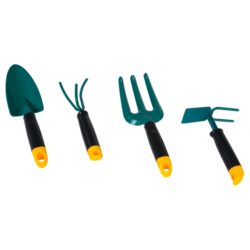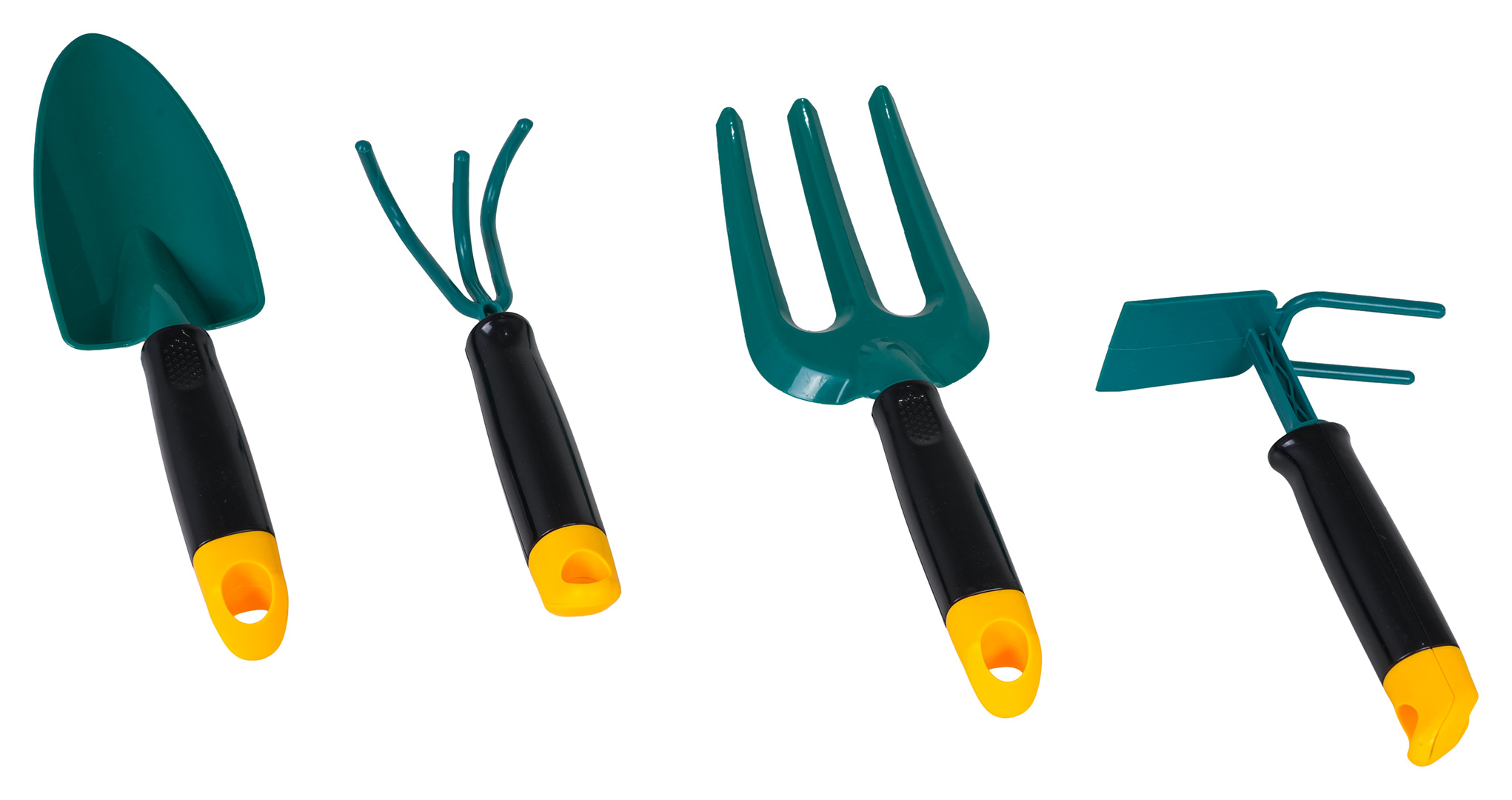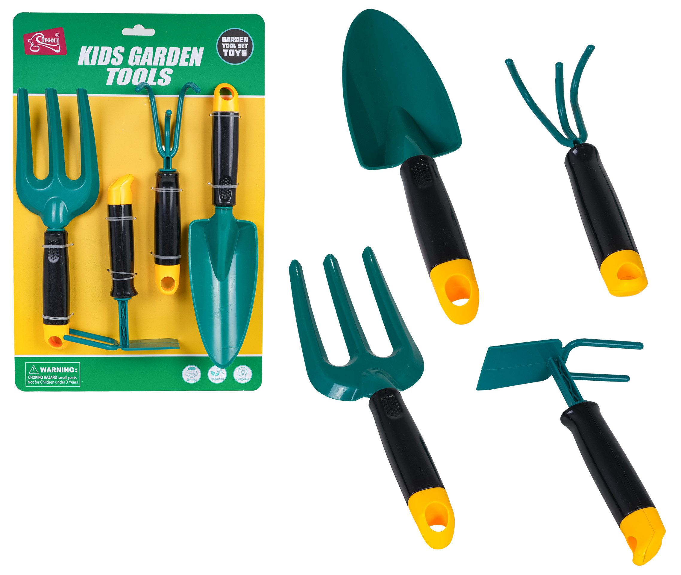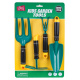 | Sada bezpečných zahradních nástrojů pro děti od tří let. Sada obsahuje vše potřebné pro práci na zahradě. Nástroje jsou bezpečné, nemají ostré hrany a jejich velikost je ideálně přizpůsobena malým ručkám. Navíc lze rukojeti nástrojů sejmout. Sada vyrobená v univerzální barevnosti, ideální jak pro chlapce, tak pro dívky.