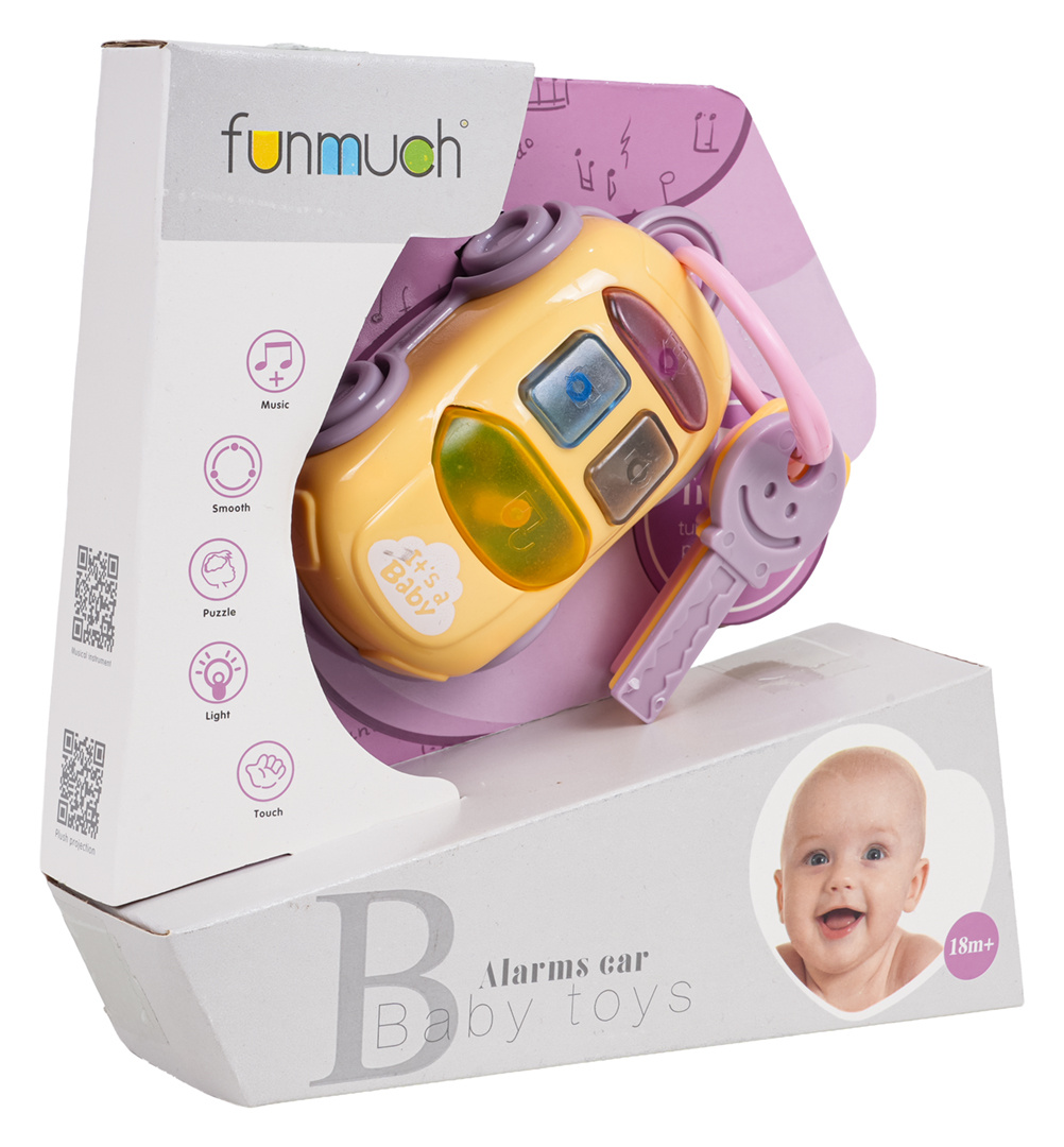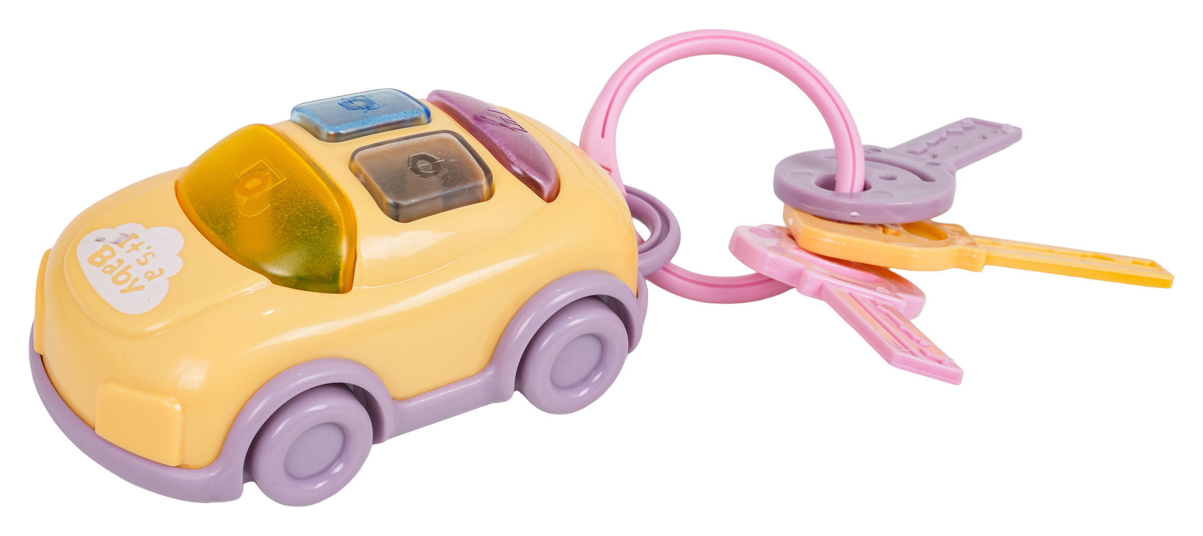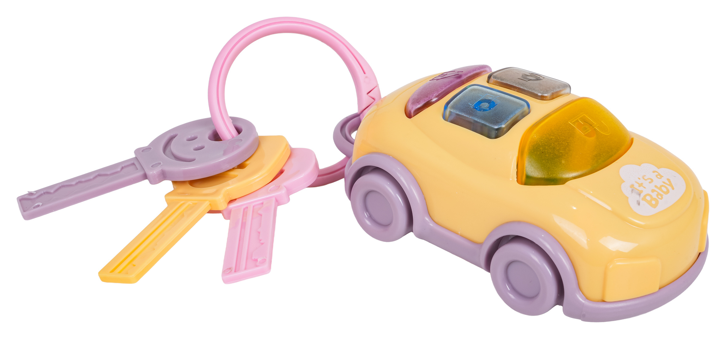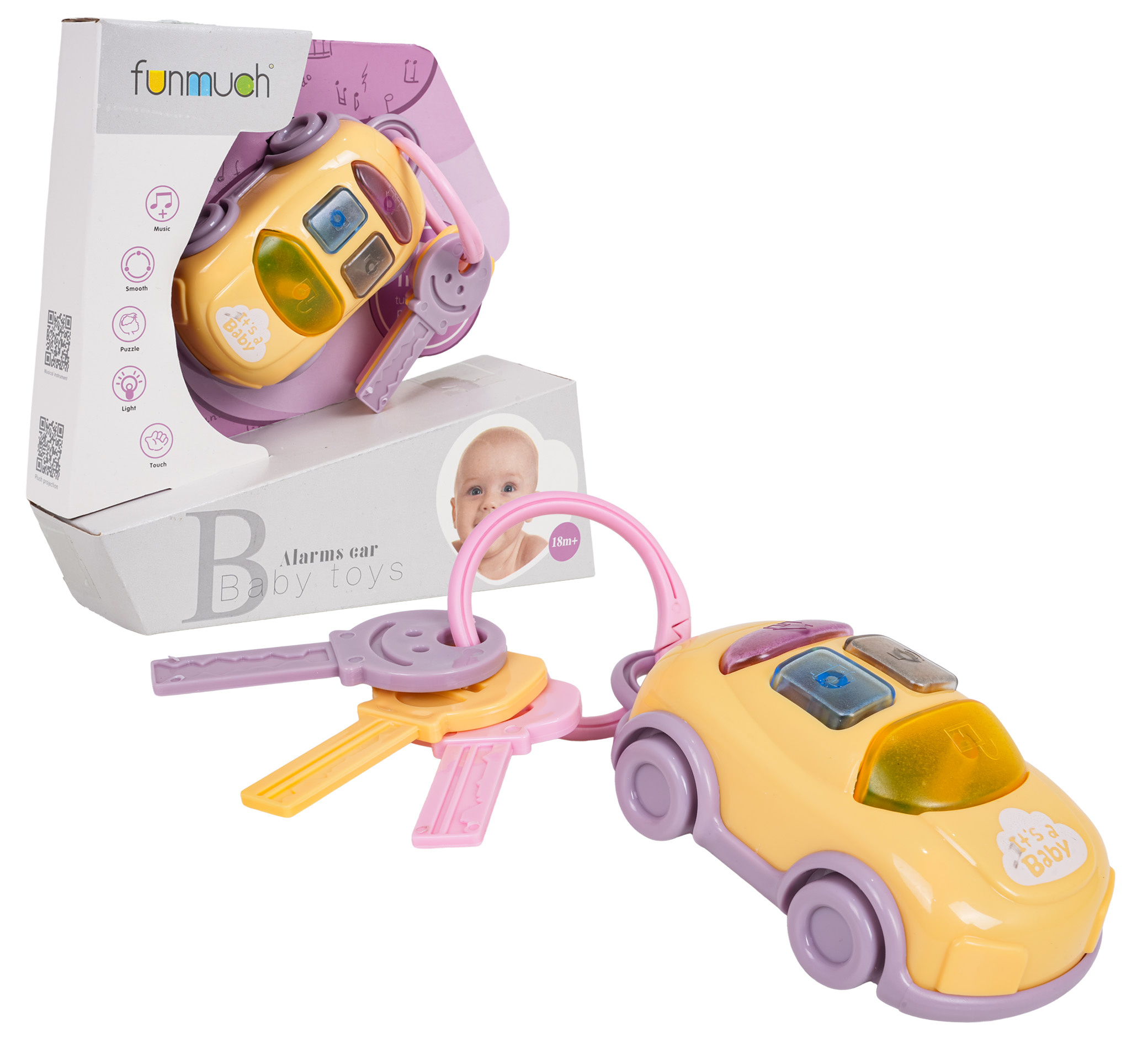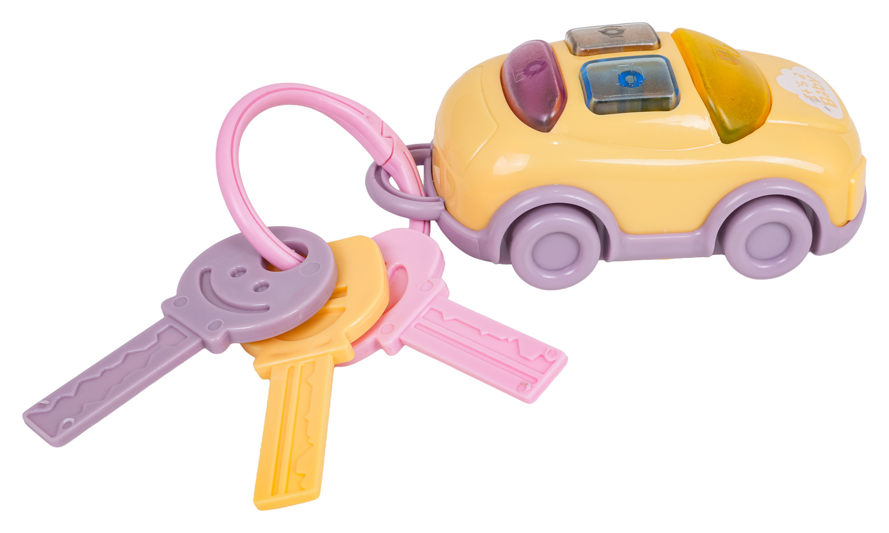 Interaktivní sada přívěsků ve tvaru vozidla a klíče pro děti od osmnácti měsíců. Hračka je vyrobena z materiálů bezpečných pro miminko, nemá ostré hrany. Na střeše autíčka se nacházejí tlačítka spouštějící zvukové efekty: zvuk zvonku, zvuk startování vozidla, otevírání auta a zvukový signál. Blikají také světýlka. Hračka je napájena bateriemi typu 2 x AAA 1,5V (nejsou součástí balení).