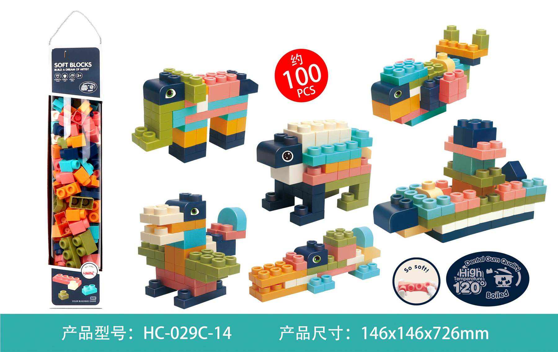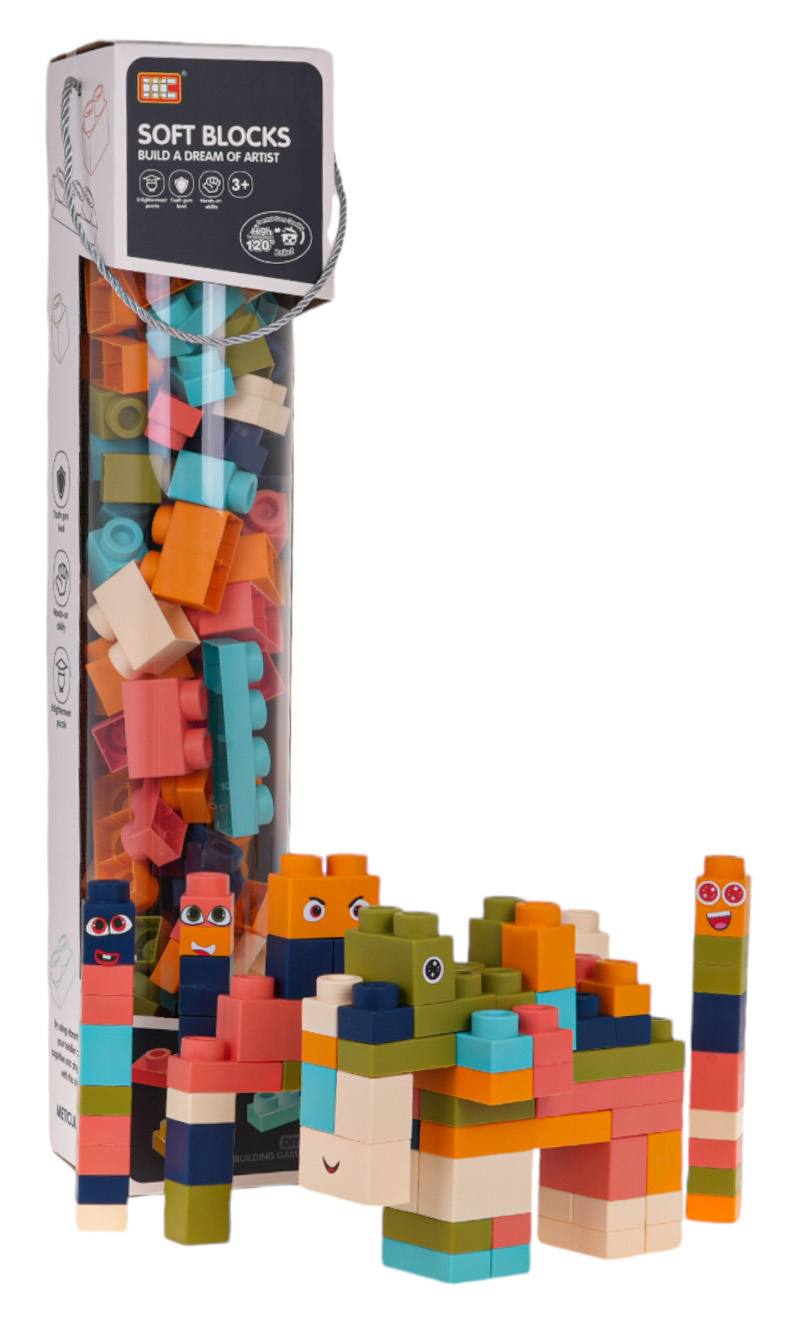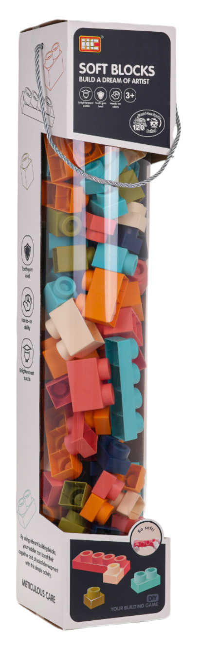 Sada barevných měkkých kostek pro děti od 3 let. Sada je vyrobena z materiálu PVC, který je bezpečný pro děti i životní prostředí. Kostky jsou lehké a nemají ostré hrany. Velmi snadno se udržují v čistotě, po vyvaření neztrácejí barvy. Knedlíčky můžeme libovolně ohýbat, a po ohnutí se vracejí do svého předchozího tvaru.