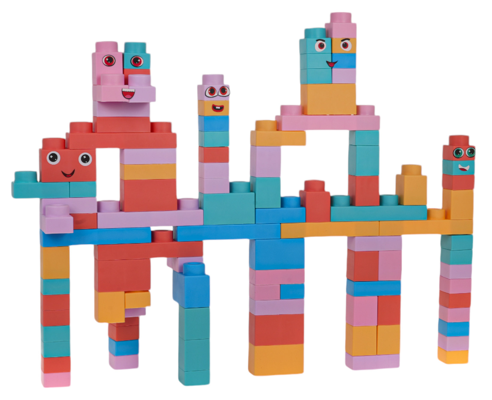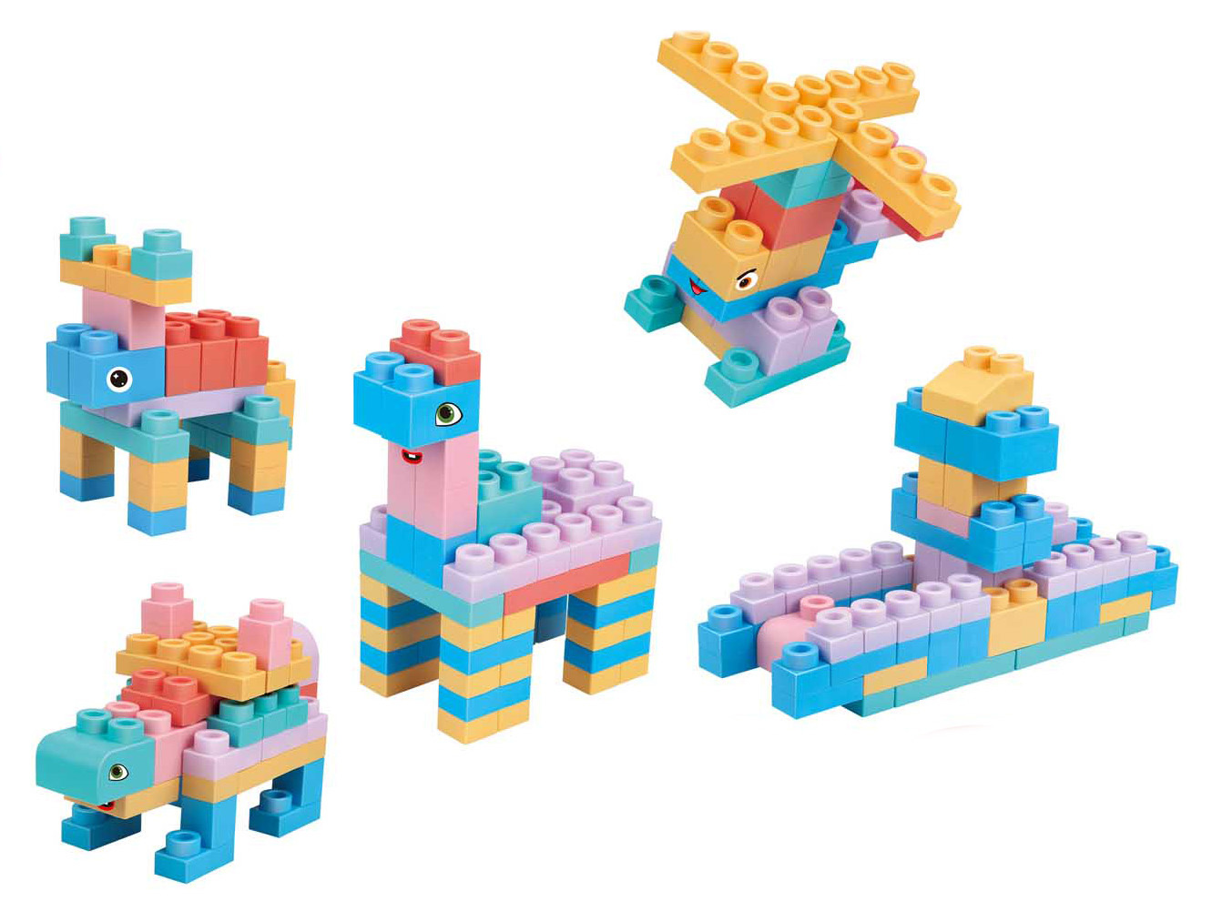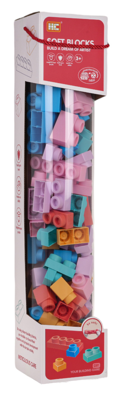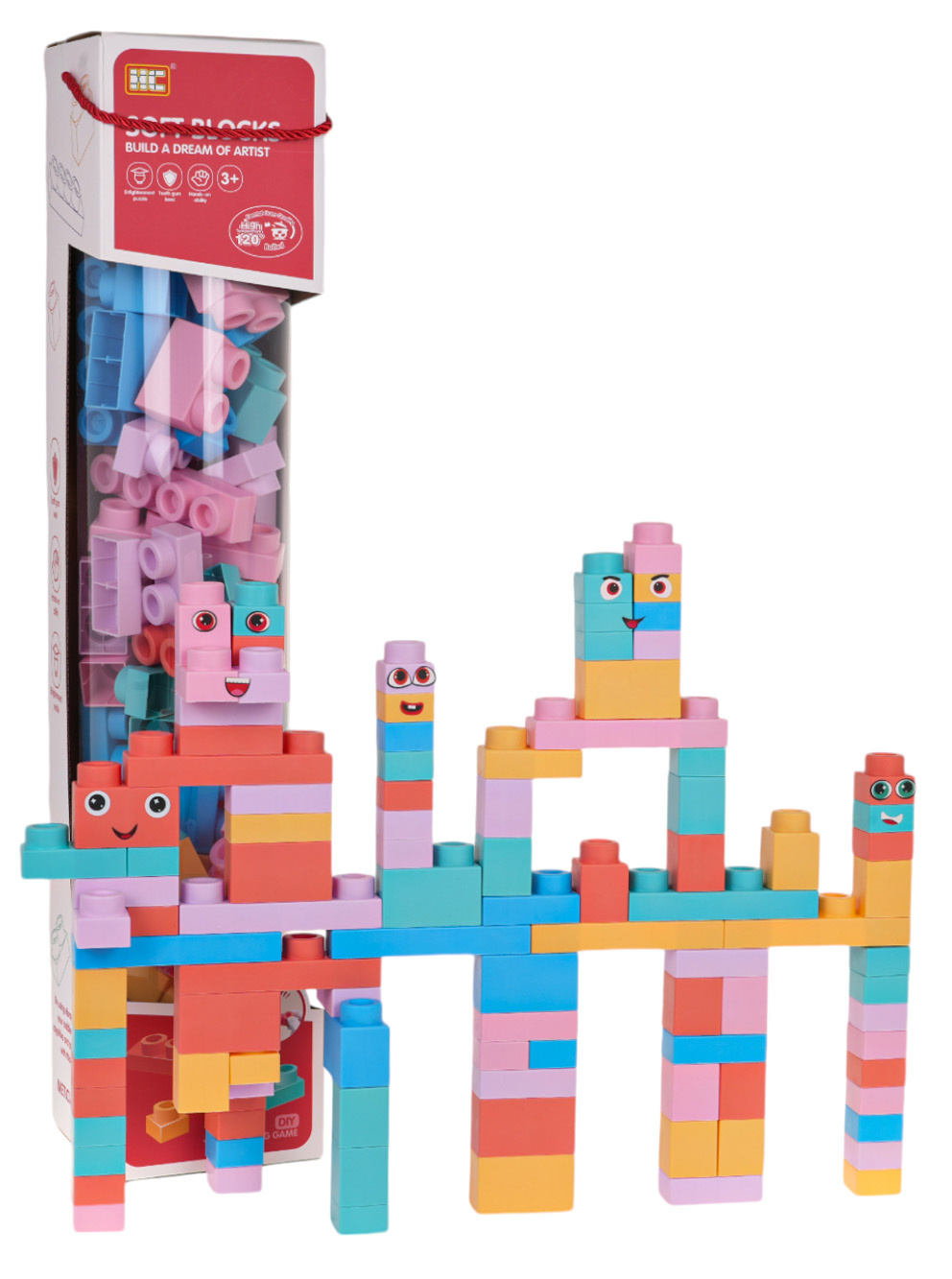 Sada barevných měkkých kostek pro děti od 3 let. Sada je vyrobena z materiálu PVC, který je bezpečný pro děti i životní prostředí. Kostky jsou lehké a nemají ostré hrany. Velmi snadno se udržují v čistotě, po vyvaření neztrácejí barvy. Knedlíčky můžeme libovolně ohýbat, a po ohnutí se vracejí do svého předchozího tvaru.