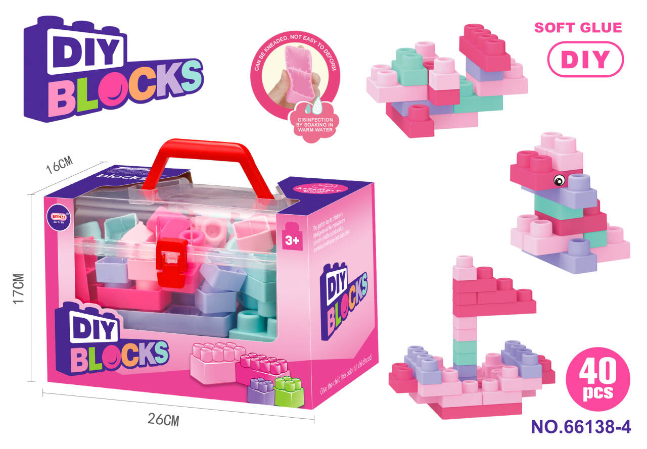 Sada barevných měkkých kostek pro děti od tří let. Sada je vyrobena z materiálu PVC, který je bezpečný pro děti i životní prostředí. Kostky jsou lehké a nemají ostré hrany. Velmi snadno se udržují v čistotě, po vyvaření neztrácejí barvy. Knedlíčky můžeme libovolně ohýbat, a po ohnutí se vracejí do svého předchozího tvaru.