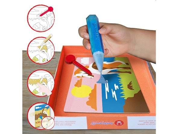 Produkt italské značky Sabbiarelli která od roku 2012 vyvíjí a vyrábí kreativní hračky pro malování pískem vyrobeným z mramoru ze slavné Carrary. Tyto neuvěřitelně nápadité sady na vybarvování jsou ze 100 % vyrobeny v Itálii a jsou určeny pro děti ve věku od 3 do 12 let. Produkty Sabbiarelli jsou bezpečné, netoxické a v souladu s evropskými standardy bezpečnosti hraček.