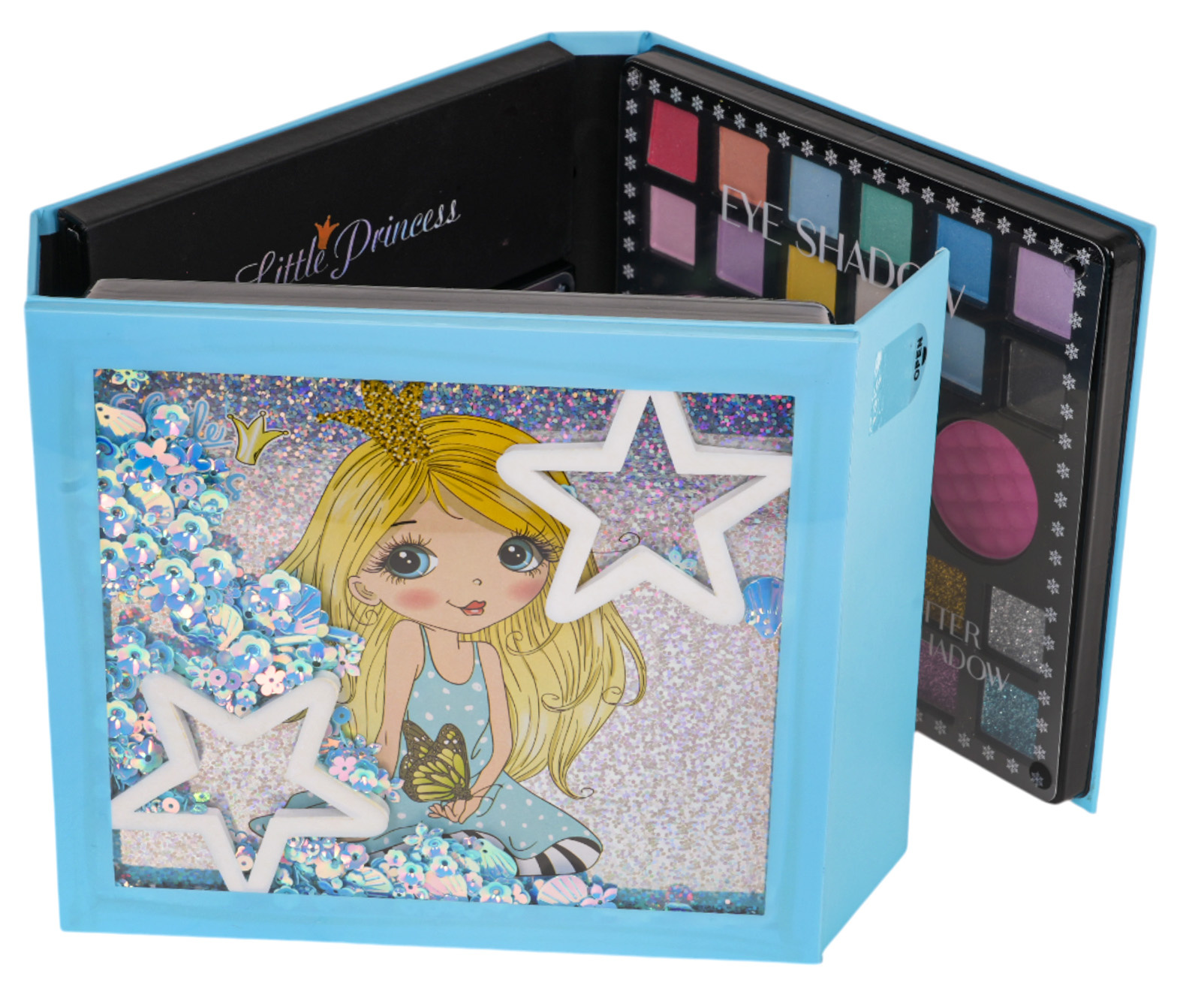 Komplexní sada líčení Sněhová princezna je ideální pro děti od 5 let. Kosmetika uložená v okouzlující zdobené skládací krabičce s obrázkem princezny podněcuje fantazii a kreativitu. Díky snadno omyvatelné a pro pokožku bezpečné kosmetice je hraní zcela bezpečné a příjemné.