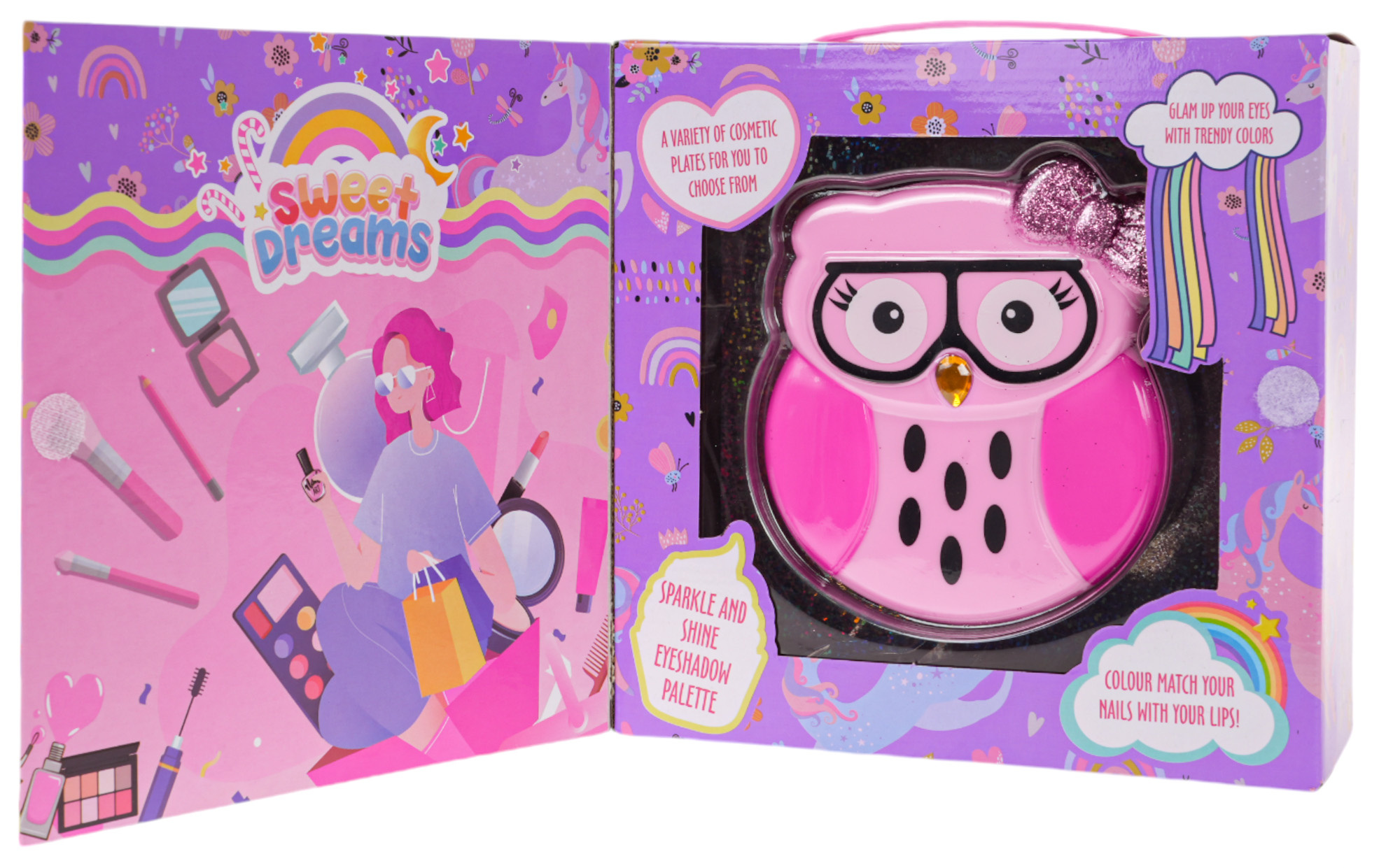 Veškerá kosmetika je uložena v okouzlující rozkládací krabičce zdobené grafikou sovy , která ještě více potěší a inspiruje ke hře. Rozsáhlá nabídka doplňků nabízí řadu možností přizpůsobených potřebám každé mladé dámy.