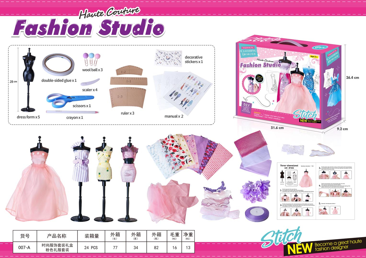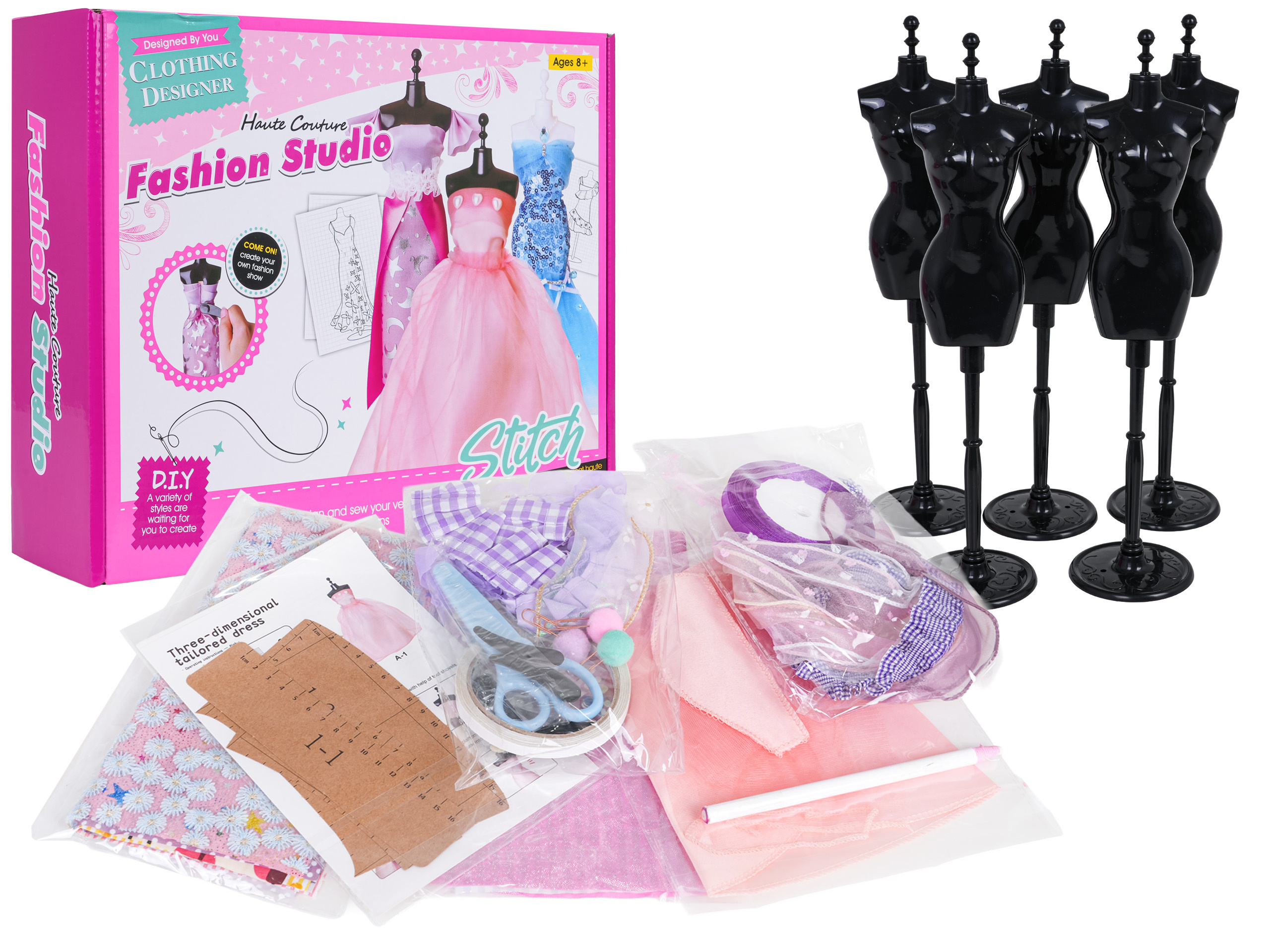 | Kreativní sada na navrhování šatů pro panenky pro děti od osmi let. Sada obsahuje vše potřebné k přípravě projektu vysněné stylizace až po vytvoření kreace. Máme pravítko, pastelku, nůžky, barevné látky, stuhy, nálepky na oblečení, pásku, volánky a až 5 figurín. Sada zdokonaluje manuálně, formuje smysl pro estetiku, rozšiřuje obzory.