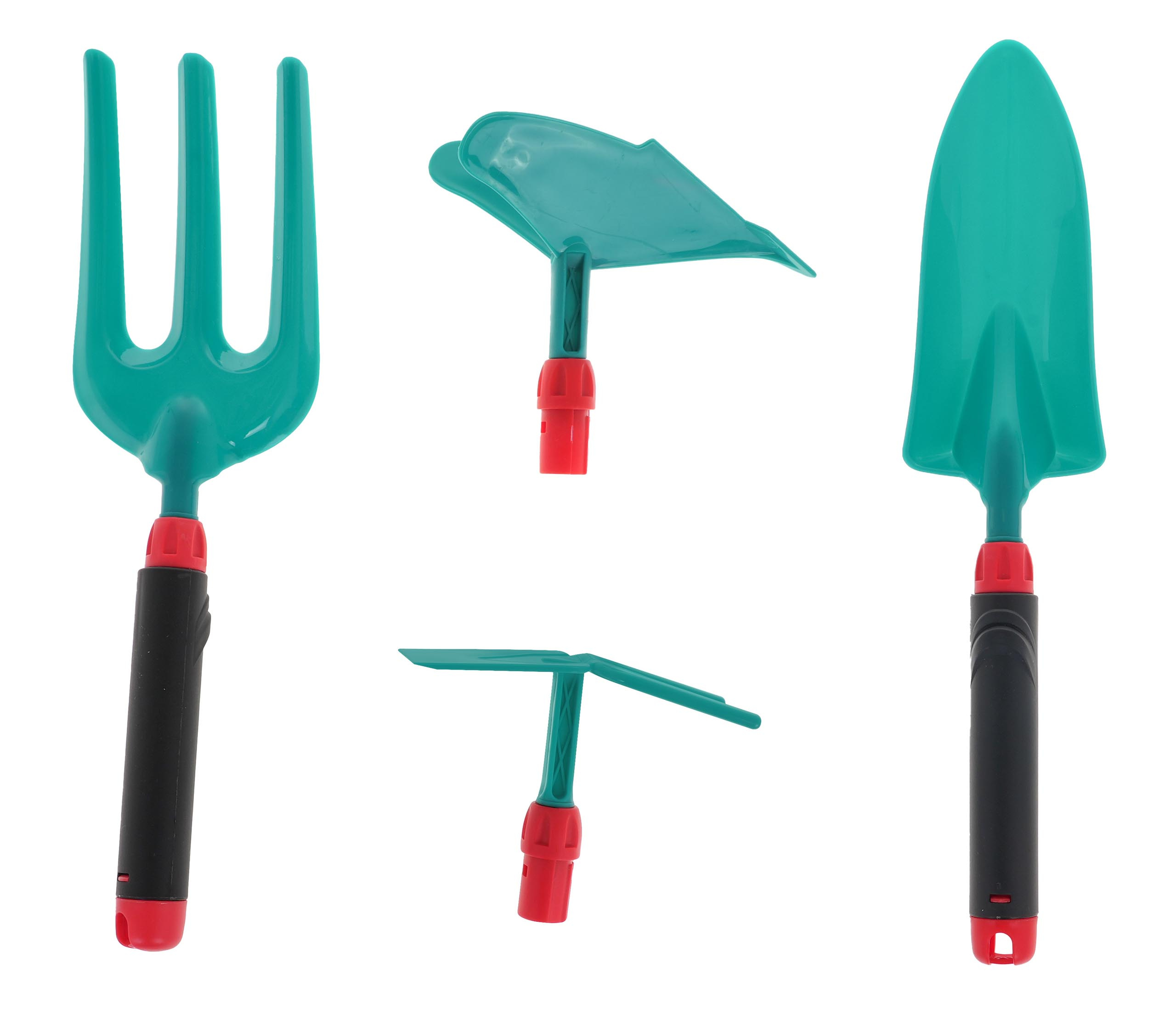Sada bezpečného zahradnického nářadí pro děti od 3 let. Sada obsahuje vše potřebné pro zahradničení. Nástroje jsou bezpečné, nemají ostré hrany a jsou dokonale přizpůsobené malým rukám. Kromě toho jsou rukojeti nástrojů odnímatelné. Sada je vyrobena v univerzálním barevném provedení a je ideální pro chlapce i dívky.