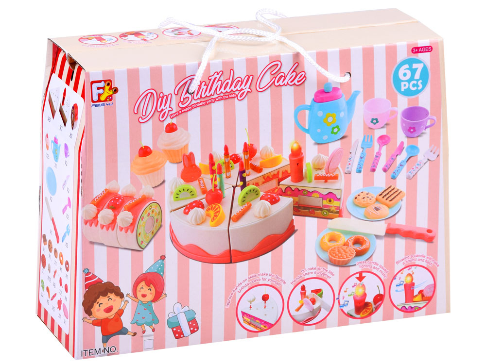 Představujeme sadu, se kterou bude moci každá malá hostitelka uspořádat nezapomenutelnou party. Součástí sady je dort, který lze různě zdobit, krájet a podávat hostům. Součástí je i další občerstvení, např.. koláčky, sušenky atd.