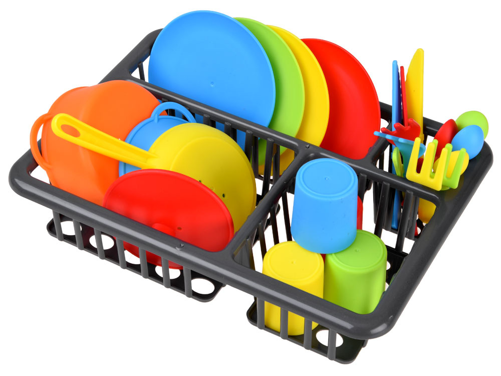 Kompletní sada nádobí se sušákem se bude dobře hodit do každé domácnosti. Sada se skládá z 28 dílů, které vám umožní připravit chutné jídlo pro vaše hosty.Sada je vyrobena velmi atraktivně a působivě a pravděpodobně se bude líbit každému malému kuchaři.