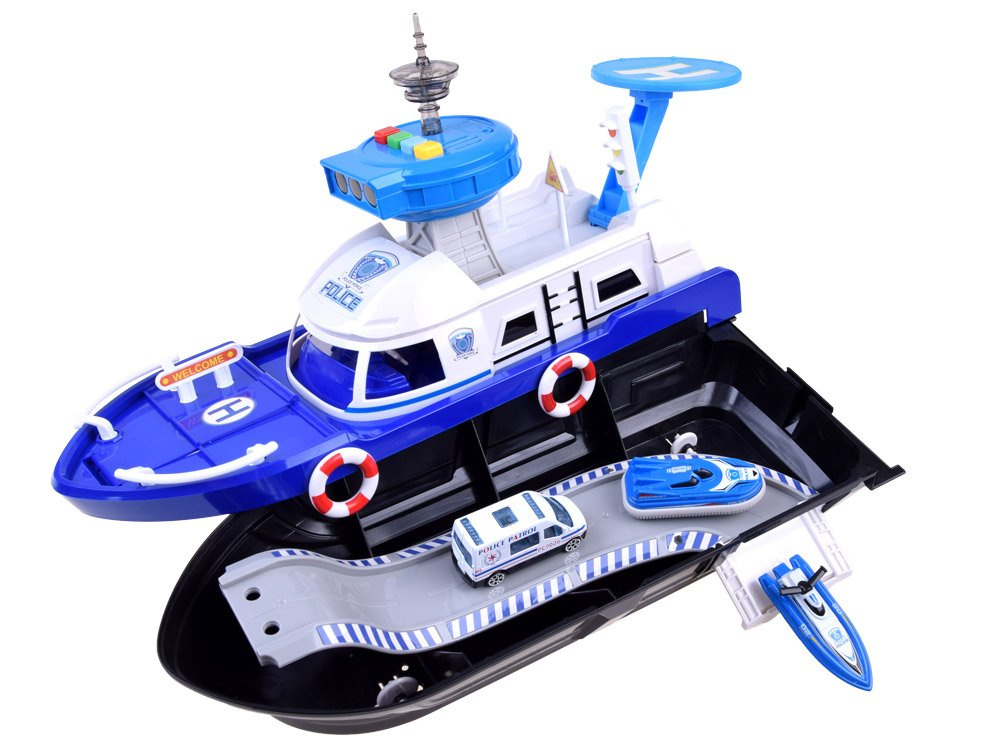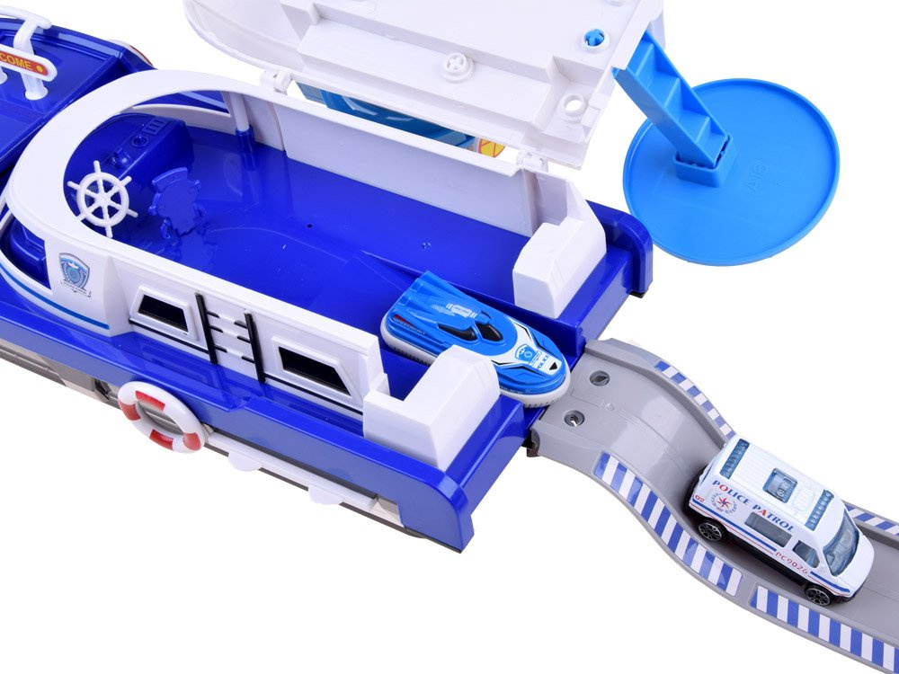 Velká loď má vnitřní úložný prostor, ve kterém lze přepravovat další vozidla. Kokpit, vybavený kormidlem a plachetnicí, má také otevírací střechu. Nápadná a působivá hračka.