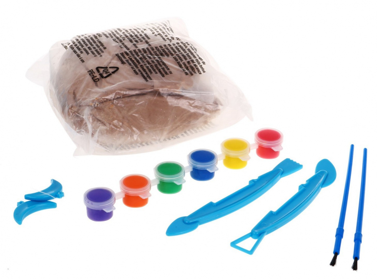 | - hrnčířská základna s kolečkem, - 2x sochařské nářadí, - stojan, - linka s úchyty, - 6 různých barev barev, - 2 x štětec, - 2 x hlína celkem 800 g | |