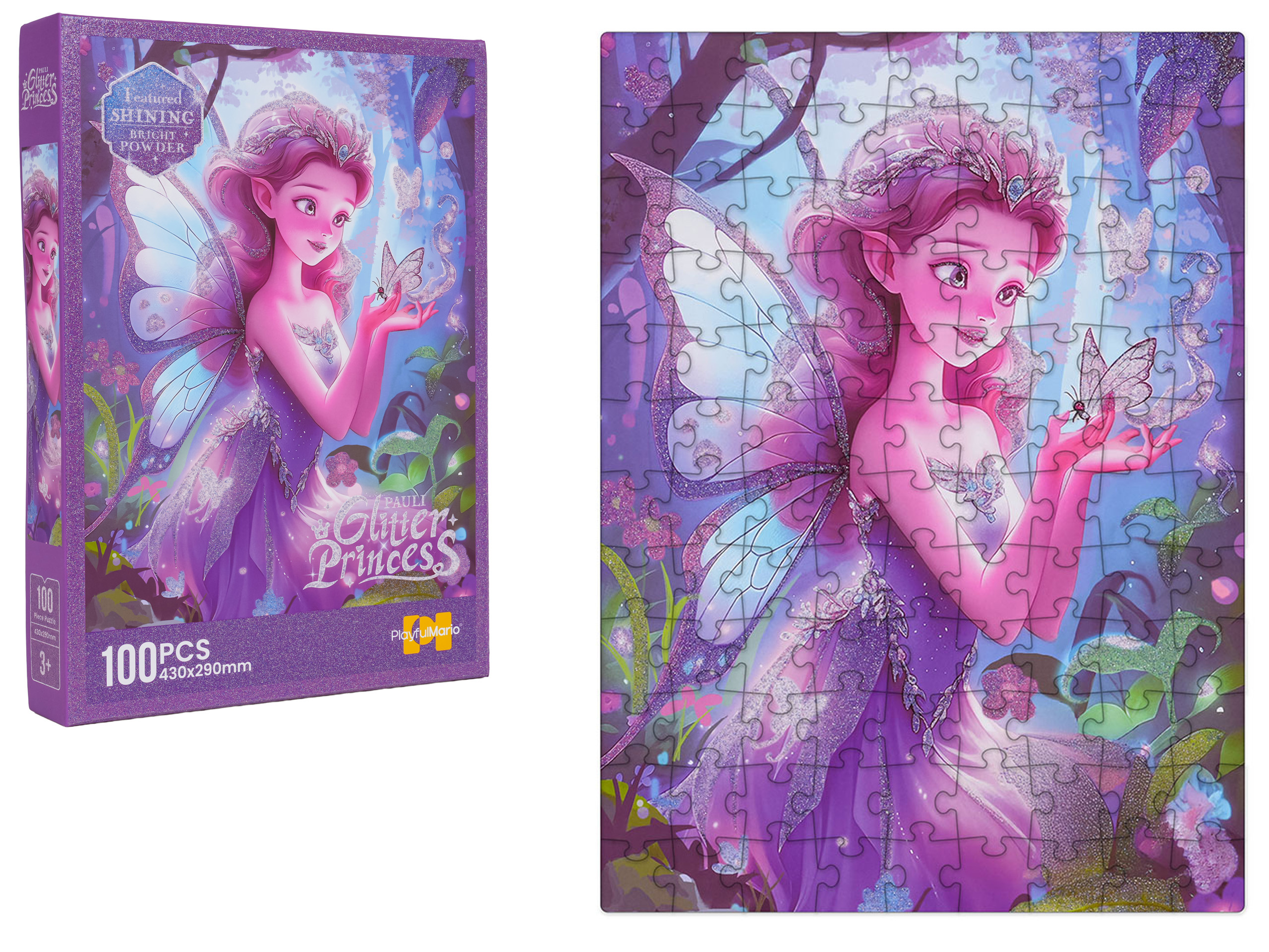 Sada puzzle 100 dílků s fialovou vílou pro děti od tří let. Po složení vznikne obrázek s prvky třpytu o rozměrech 43 cm x 29 cm. Skládání puzzle nás učí koncentraci a také zaměření na jednu věc. Umožňuje nám se odreagovat, zapomenout na problémy. Puzzle nás učí logickému myšlení, rozpoznávání tvarů a příznivě ovlivňují naši vizuální paměť.