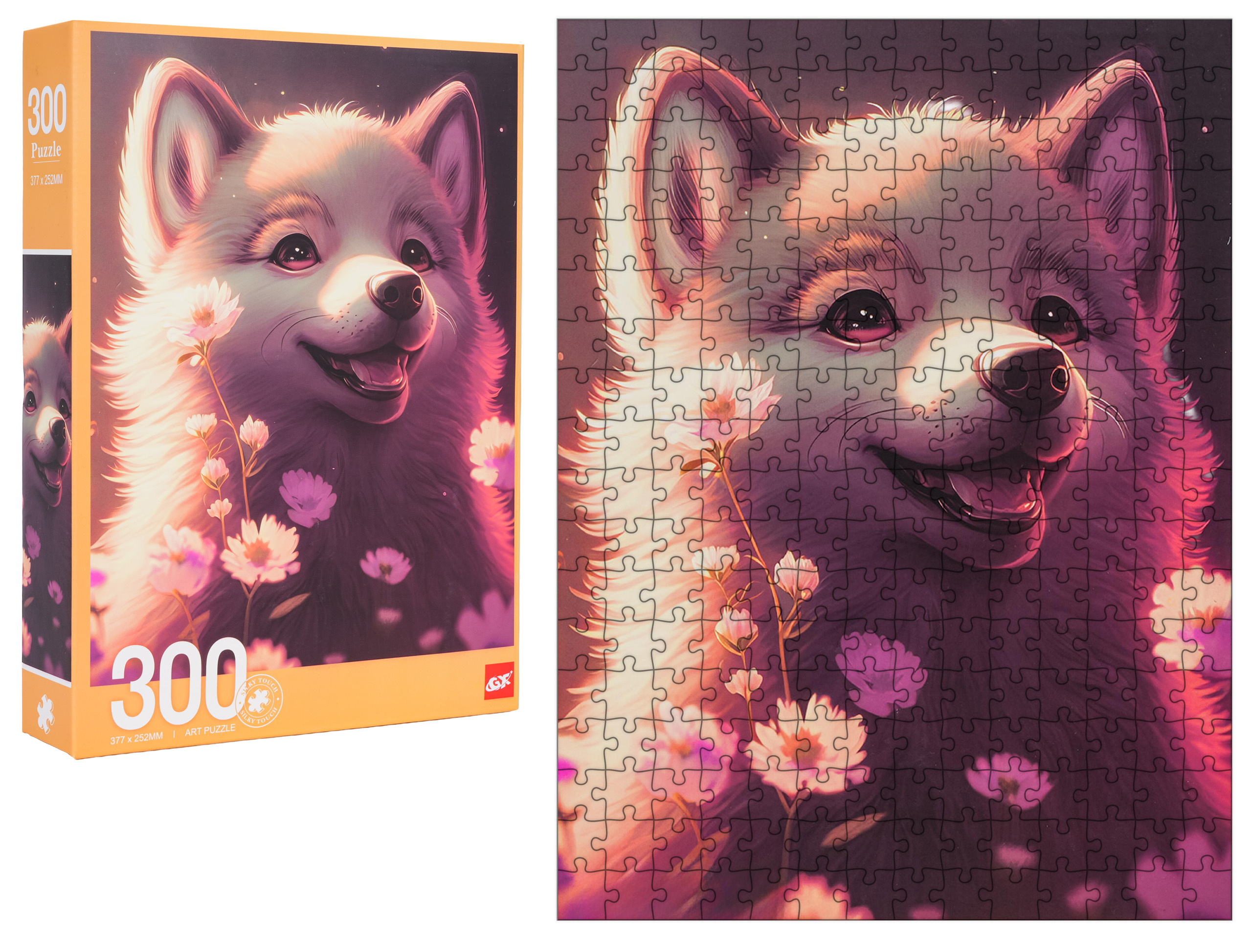 Sada puzzle 300 dílků se psem pro děti od osmi let. Po složení vznikne obrázek o rozměrech 37,7 cm x 25,2 cm. Skládání puzzle nás učí koncentraci a také zaměření na jednu věc. Umožňuje nám se odreagovat, zapomenout na problémy. Puzzle nás učí logickému myšlení, rozpoznávání tvarů a příznivě ovlivňují naši vizuální paměť.