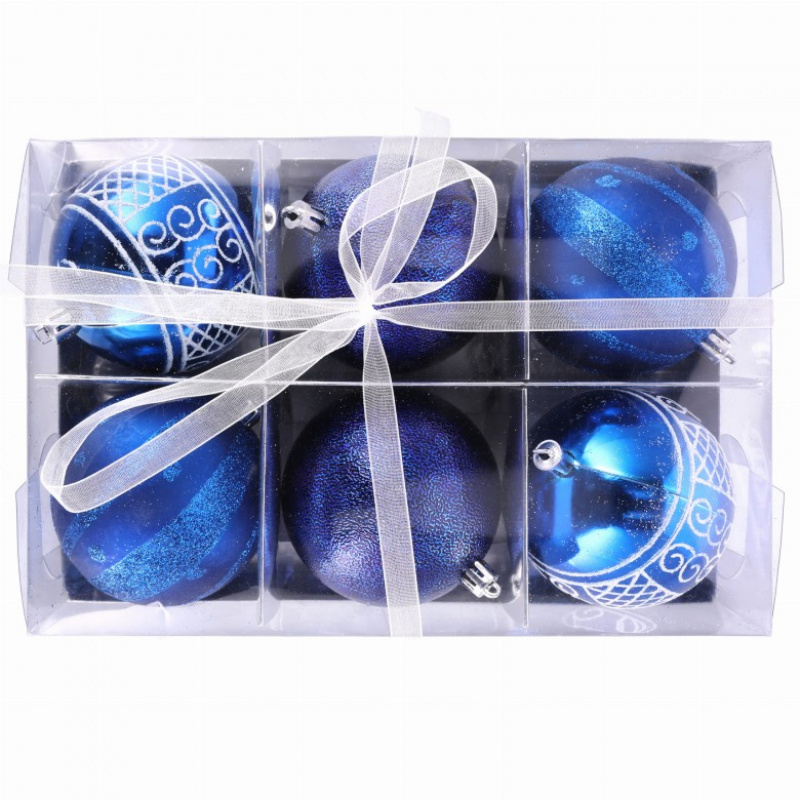 Sada šesti modrých vánočních ozdob, 3 vzory na stromeček