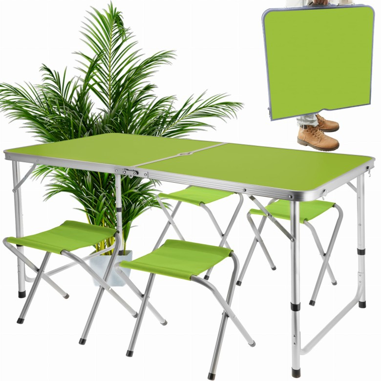 Nespornou výhodou je možnost složení židlí a stolu do kufru a jejich malé rozměry, což umožňuje bezproblémovou přepravu a skladování mimo sezónu Sada obsahuje stůl o rozměrech 120x60 cm a 4 židle o rozměrech 27x32x35 cm Nastavitelné nohy umožňují nastavit výšku stolu na 54, 62 nebo 70 cm