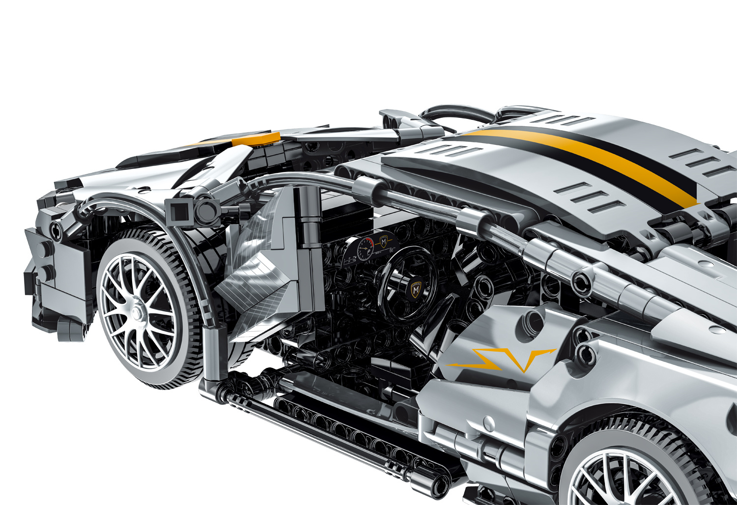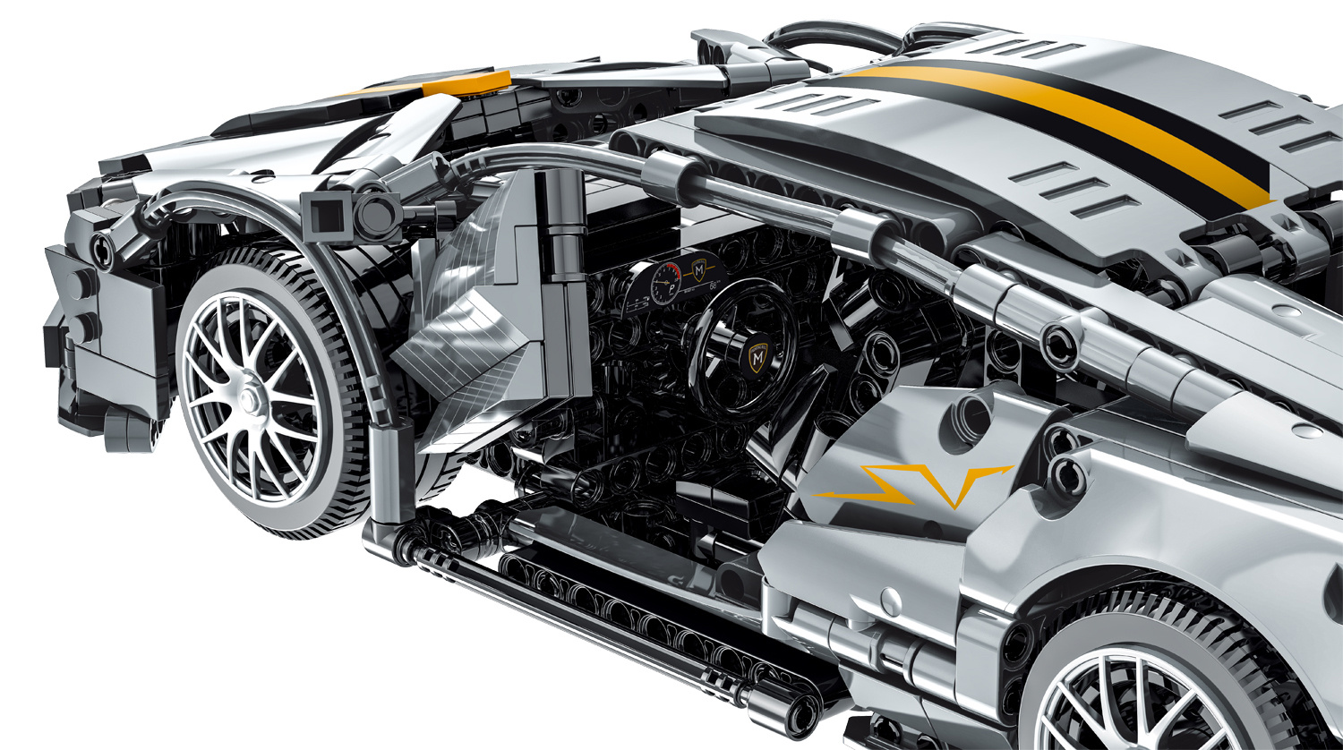 Sada 1356 stavebních kostek pro vlastní stavbu sportovního auta M-Sports. Model vyrobený v měřítku 1:14. Hračka určená pro děti od 6 let. Má otevírací dveře, pohyblivý volant a otočná přední kola. V sadě je přiložen obrazový návod. Skládání stavebních kostek rozvíjí u dětí manuální dovednosti, prostorovou představivost a trpělivost.
