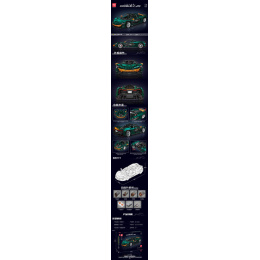 Vysoce kvalitní stavební kostky Mould King pro děti od čtrnácti let. Sada se skládá z 3268 prvků, ze kterých lze postavit zelené sportovní auto. Vozidlo má otevírací boční dveře a kapotu, a také vysouvací zadní spoiler. Sadu můžeme přeměnit na dálkově ovládaný, v této sadě nejsou motory, jedná se o statickou verzi.