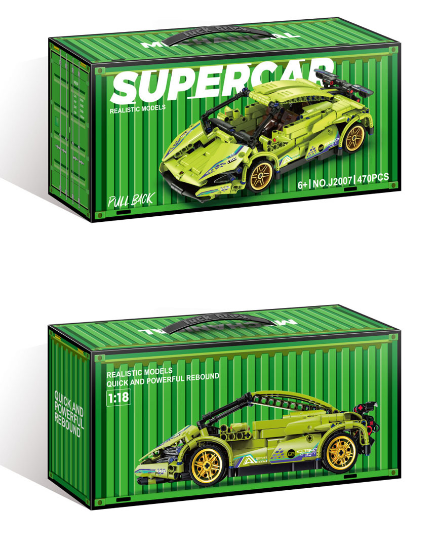 Vysoce kvalitní stavební kostky pro děti od šesti let. Sada se skládá ze 470 prvků, ze kterých lze postavit zelené sportovní auto. Tento skvělý model auta jistě upoutá pozornost svými detaily. Vozidlo má gumové pneumatiky, které dobře drží na povrchu, a pohon pull-back, který mu umožňuje plynulou jízdu.