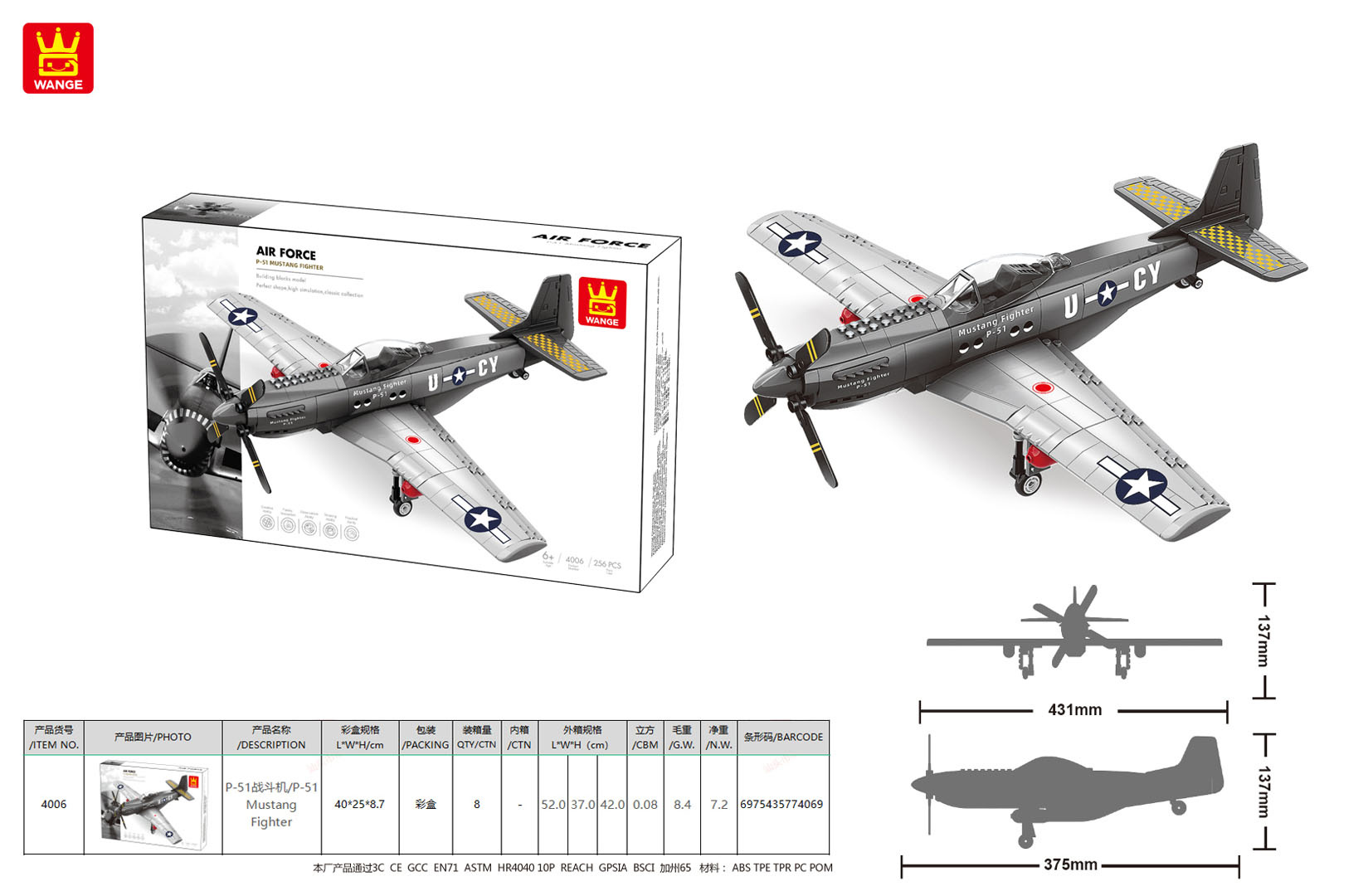 | Vysoce kvalitní stavební kostky pro děti od šesti let. Sada se skládá z 258 prvků, ze kterých lze postavit vojenské letadlo. Tento skvělý model letadla jistě upoutá pozornost svými detaily.
