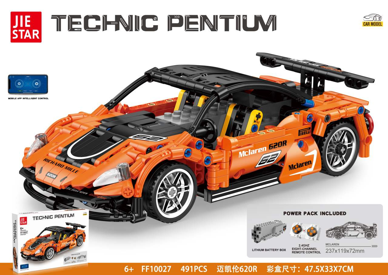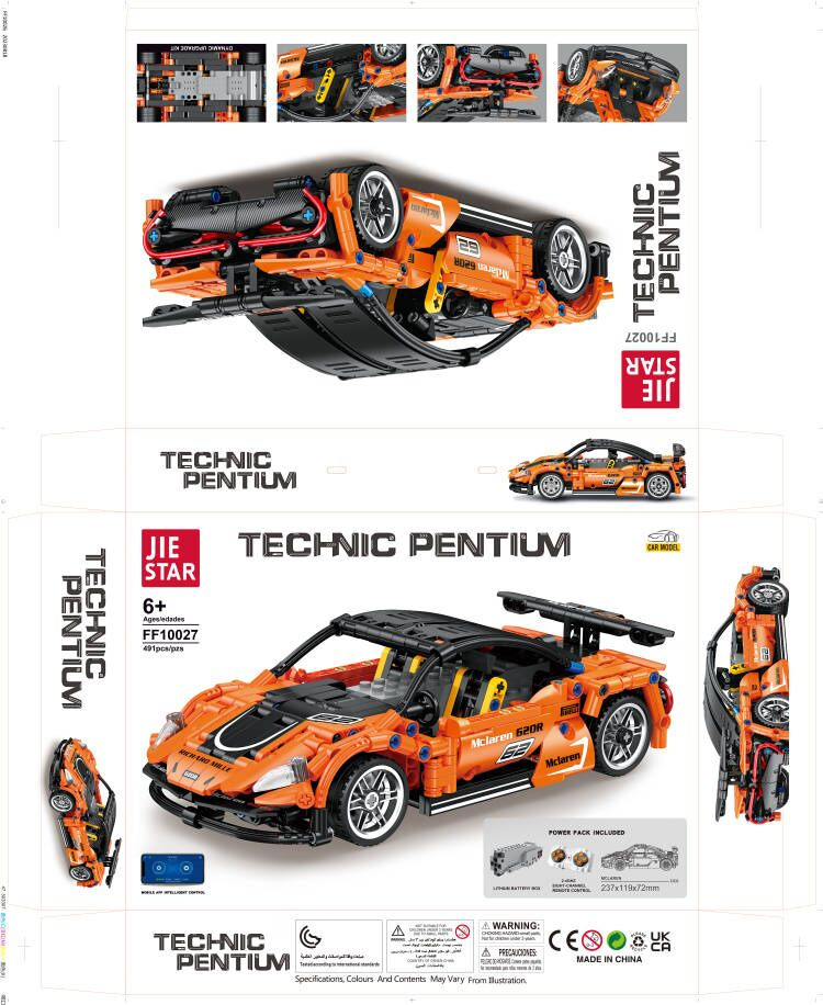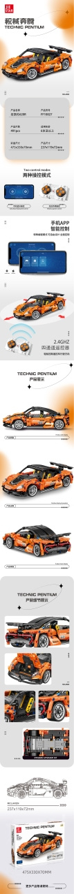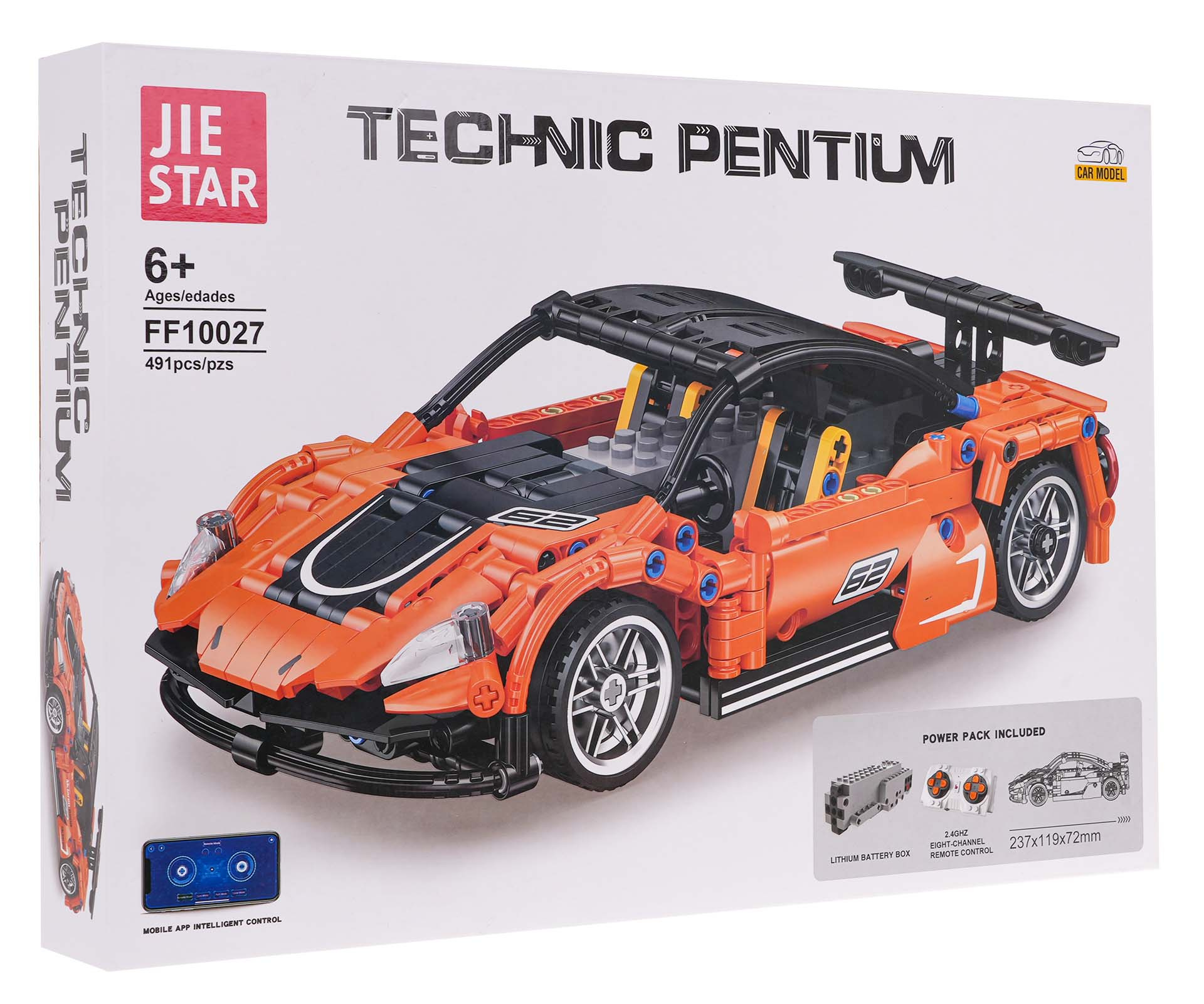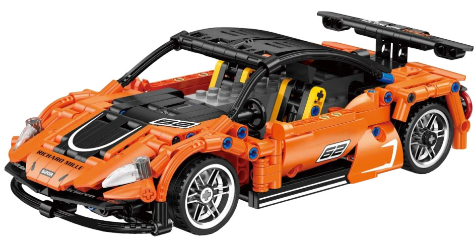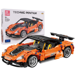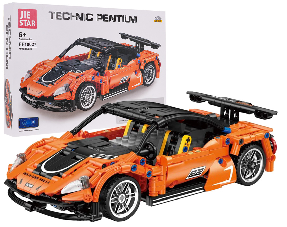 Sada 491 stavebních kostek pro vlastní sestavení oranžového sportovního auta s funkcí dálkového ovládání. Hračka určená pro děti od 6 let. Kostky a části autíčka jsou vyrobeny z vysoce kvalitního plastu. Auto má pohyblivé prvky, jako jsou otevírací dveře a kapota.