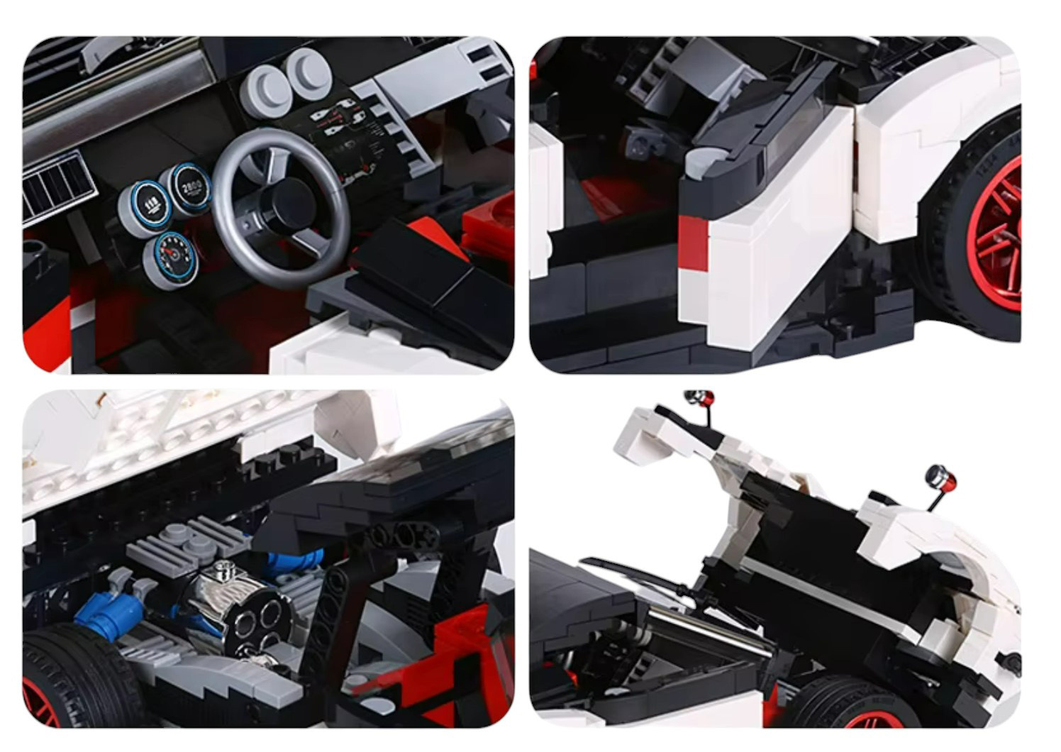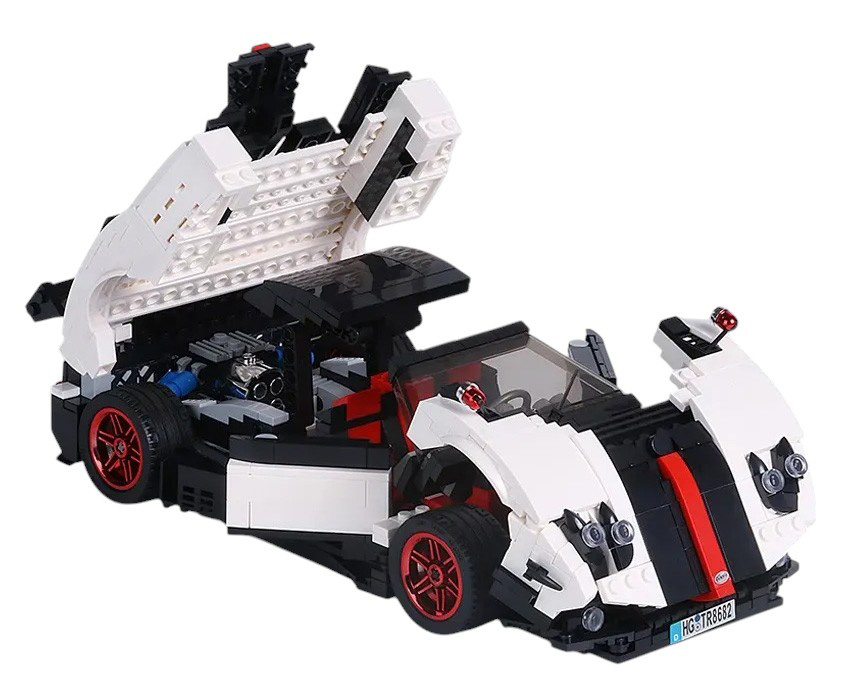 Sada 960 stavebních kostek pro vlastní sestavení bílého sportovního auta. Model vyrobený v měřítku 1:16. Hračka určená pro děti od 8 let. Kostky a části autíčka jsou vyrobeny z vysoce kvalitního plastu a gumy. Navíc byly galvanizovány imitace výfukových trubek a kryty kol pro realističtější efekt.