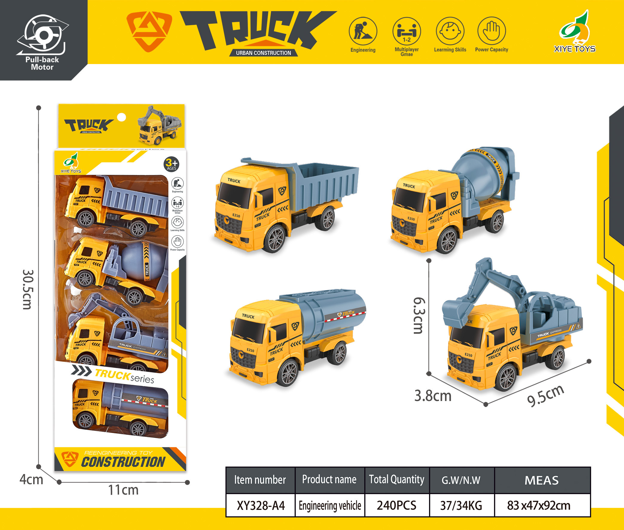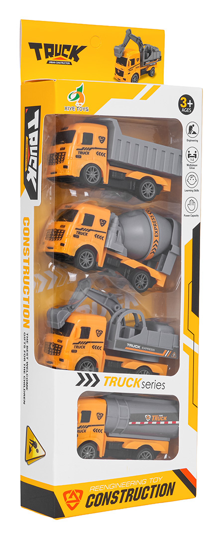 Sada 4 stavebních vozidel s pohyblivými prvky pro děti od tří let. Sada byla vyrobena z nejkvalitnějších materiálů s důrazem na detaily. Malé rozměry vozidel umožňují vzít je všude s sebou. V sadě se nachází míchačka na beton, sklápěčka, rypadlo-nakladač a cisterna.
