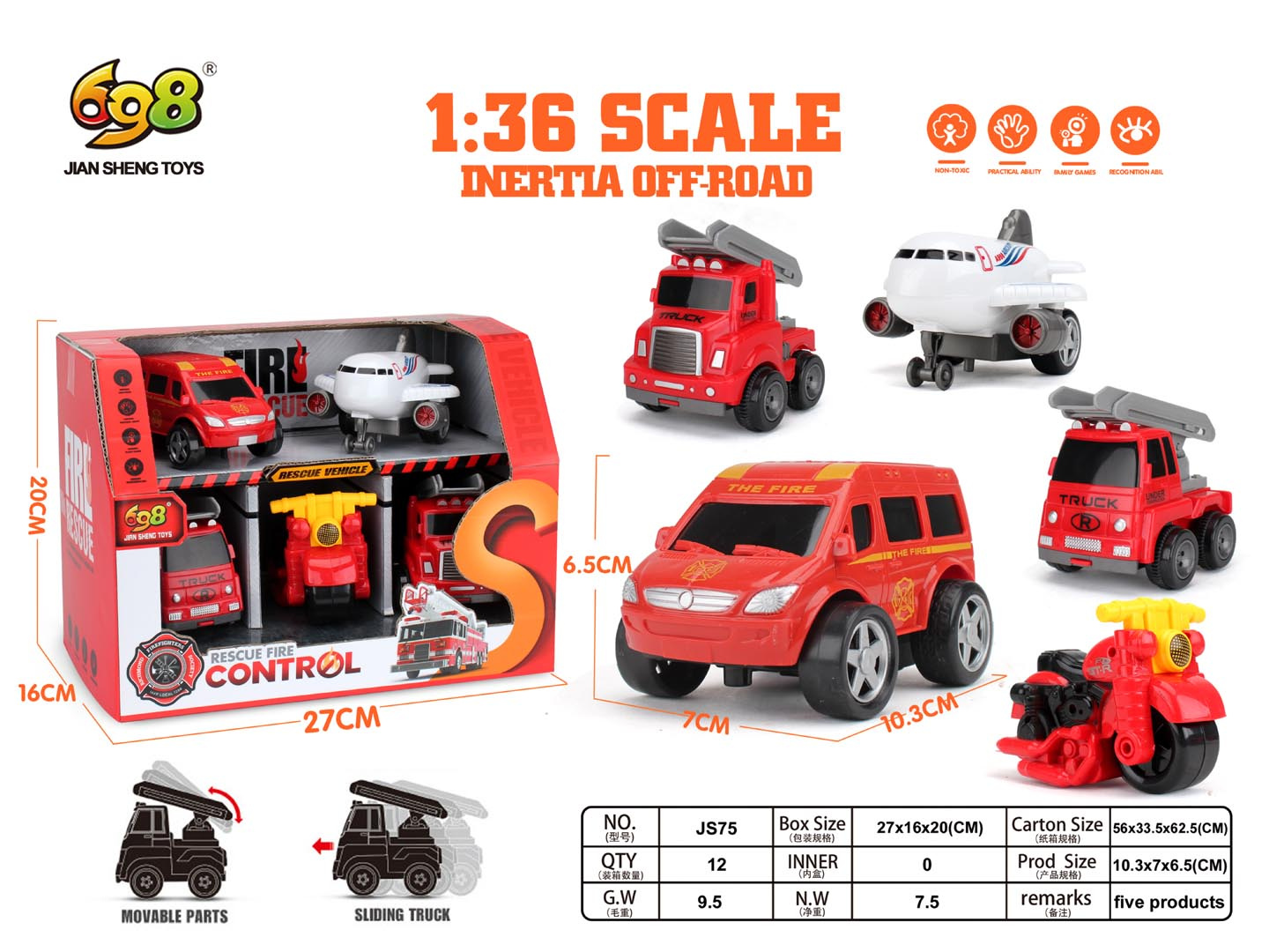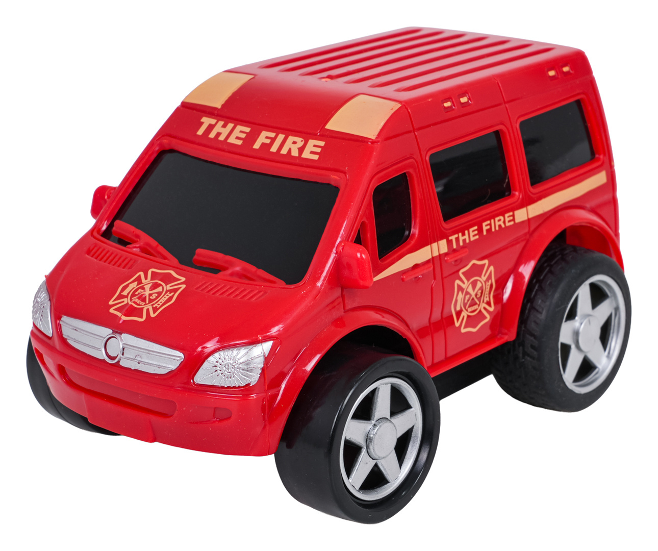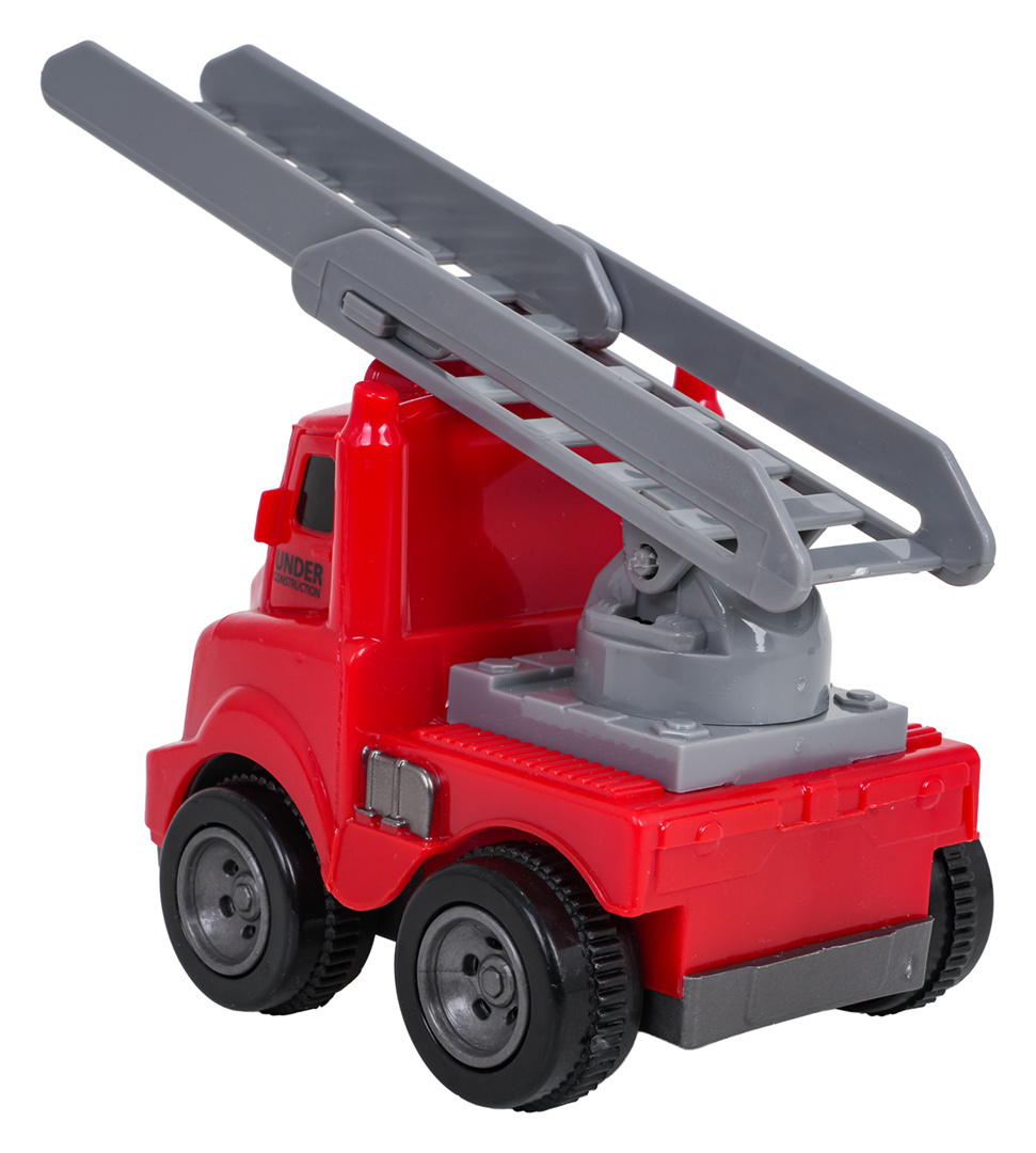 Sada hasičských vozidel s pohonem pro děti od tří let. Autíčka nevyžadují použití baterií, pohánějí se tahem dozadu nebo dopředu. Dodatečně může být balení využito jako parkoviště pro vozidla.