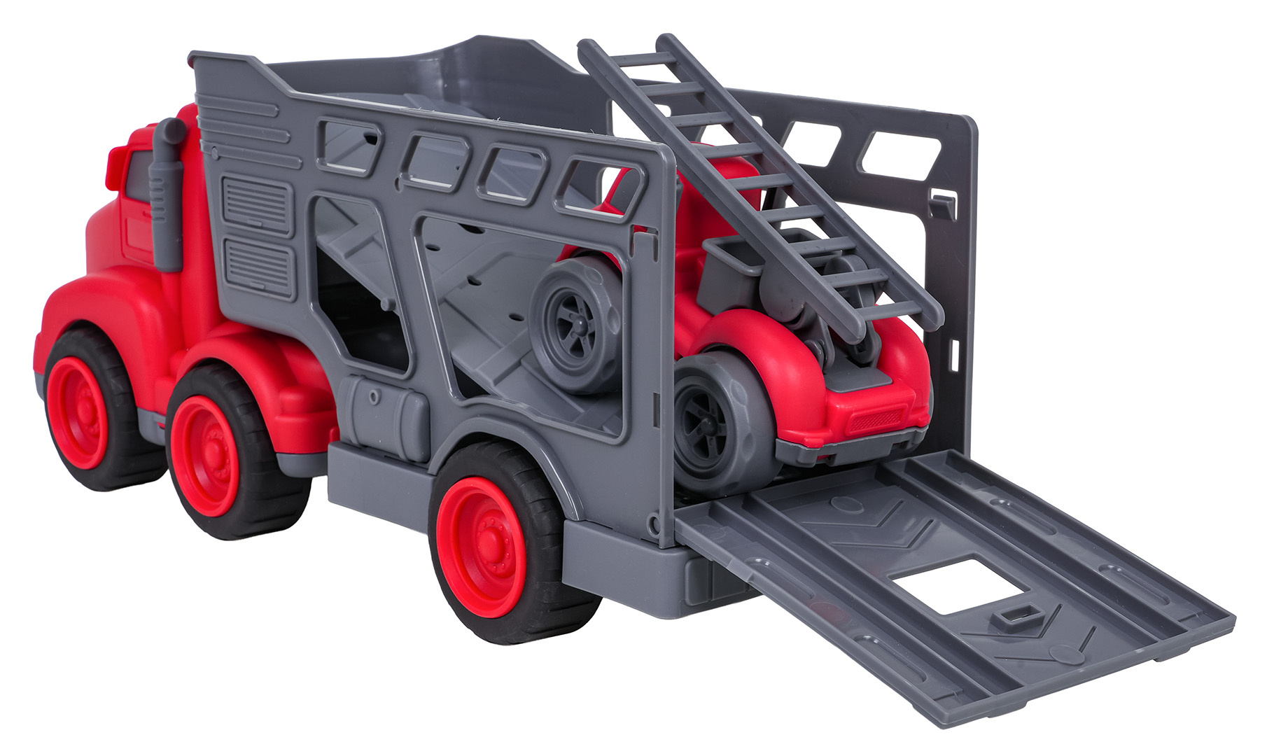 Sada vozidel odtahovka s autíčkem Hasičského sboru pro děti od tří let. Sada byla vyrobena z nejkvalitnějšího plastu v živých barvách. Bude to velká zábava pro malé milovníky hasičů. Hasičské autíčko má pohyblivá kola s předním pohonem, velmi snadno se pohybuje po povrchu. Můžeme také zvedat a spouštět žebřík.