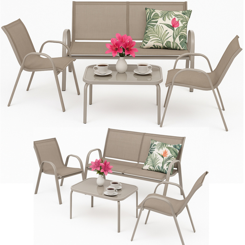 Sada zahradního nábytku - 2x křeslo, pohovka, stolek béžové