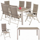 Regulace opěradla: Křesla jsou vybavena 7stupňovou regulací opěradla, což umožňuje ideální nastavení úhlu sklonu podle vašich potřeb – od sedící polohy po relaxační, pololežící. Trvanlivost a odolnost: Nábytek vyrobený z vysoce kvalitních materiálů odolných vůči povětrnostním vlivům, jako je déšť nebo UV záření, zaručuje jeho dlouhou životnost a zachování estetického vzhledu po mnoho sezón. Stylový design: Sada se vyznačuje moderním, elegantním vzhledem, který dokonale zapadne do každé zahrady, terasy nebo balkonu.