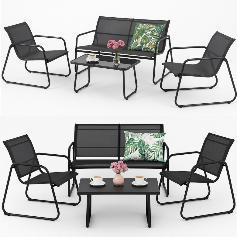 Sada zahradního nábytku - stolek, dvě křesla a pohovka černé
