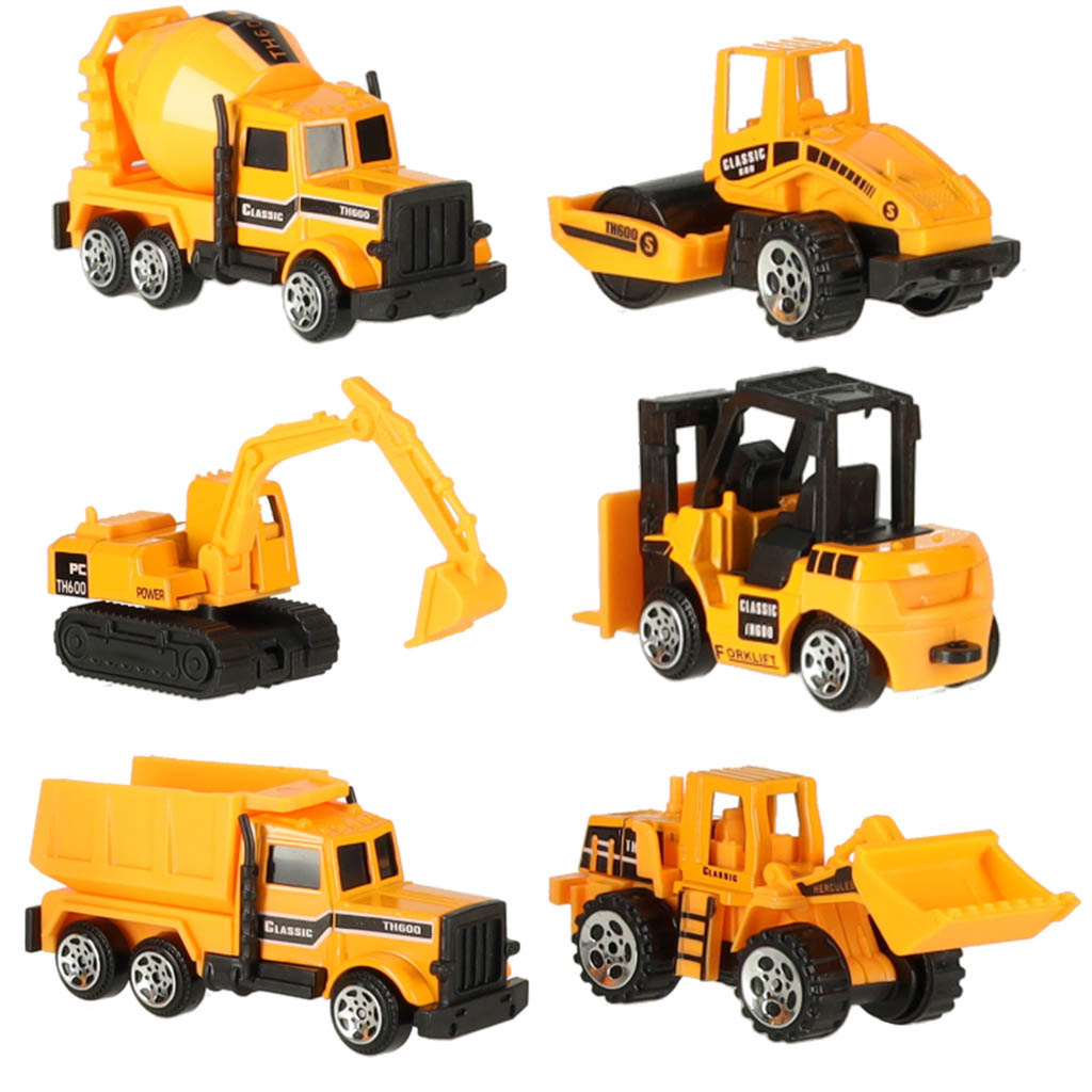 Sada šesti stavebních masek z odolného plastu. Sada obsahuje míchačku na beton, vysokozdvižný vozík, bagr, buldozer, sklápěč a silniční válec. Sada rozvíjí kreativitu a představivost vašeho dítěte. Rozměry od 7,5x2,5x3,5 cm.Celý popis