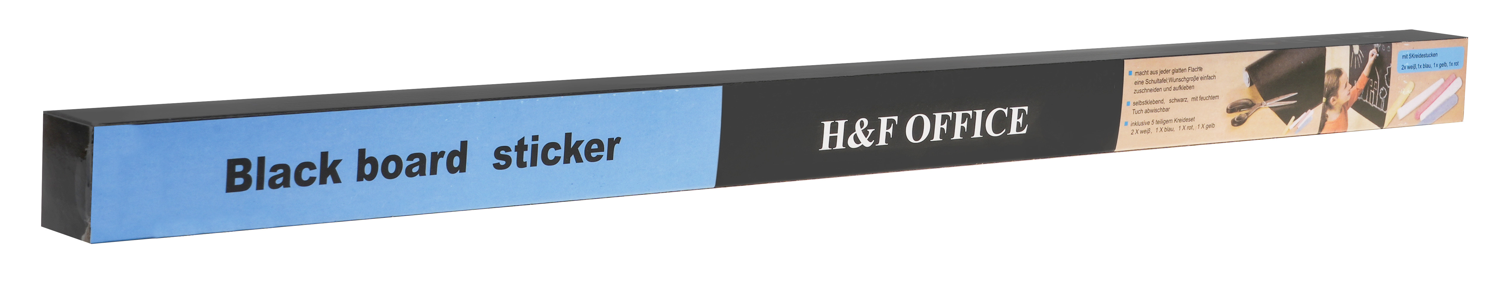 Samolepicí tabule je vhodná pro děti od 3 let. Je ideální do dětského pokoje, ale také do kuchyně nebo kanceláře. Deska se velmi snadno sestavuje a rozkládá, lze ji kdekoli řezat a lepit. Na tabuli malujeme nebo píšeme křídou. Barevné křídy jsou součástí balení. Kreslení, poznámky se odstraňují vlhkým hadříkem.