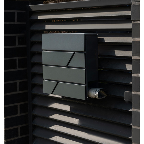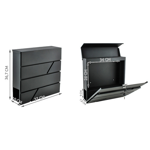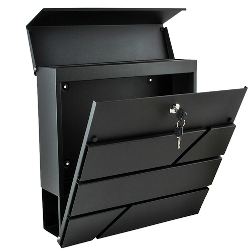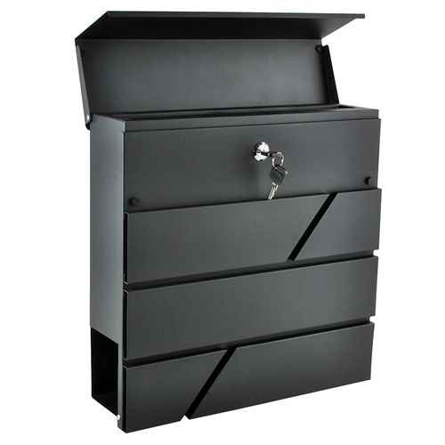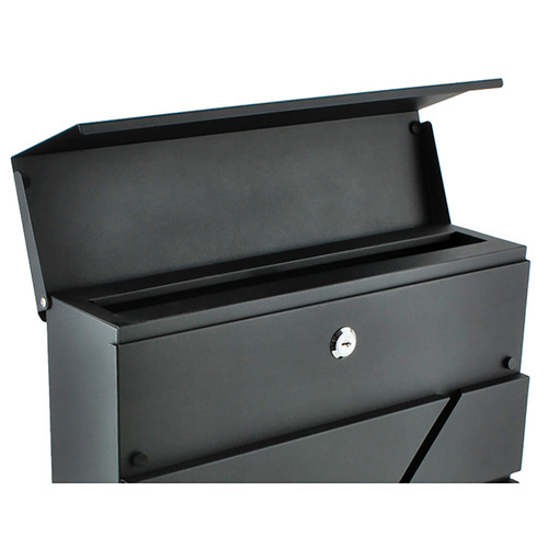 Přední otevírací dvířka se zavírají zámkem se zavírací pákou a otevírá se dostatečně široce, aby umožnil snadný přístup do vnitřku poštovní schránky, a tím z ní efektivně dostat ještě více korespondence. Nachází se na základně krabice otvor pro odložení novin, reklamních letáků nebo letáků .