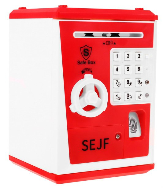 - velké prasátko ve tvaru trezoru, napájené 3 bateriemi AA 3 x 1,5 V (nejsou součástí dodávky),