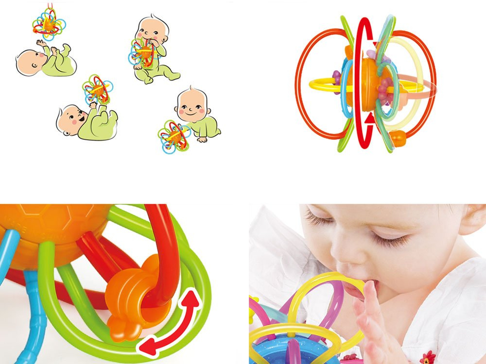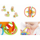 Díky pružným prvkům bude vaše dítě hračku bez problémů držet v rukou. Hladký a měkký povrch pružných válců skvěle masíruje dásně vašeho dítěte. Barevné korálky umístěné na pružných vírech snadno kloužou po hračce.