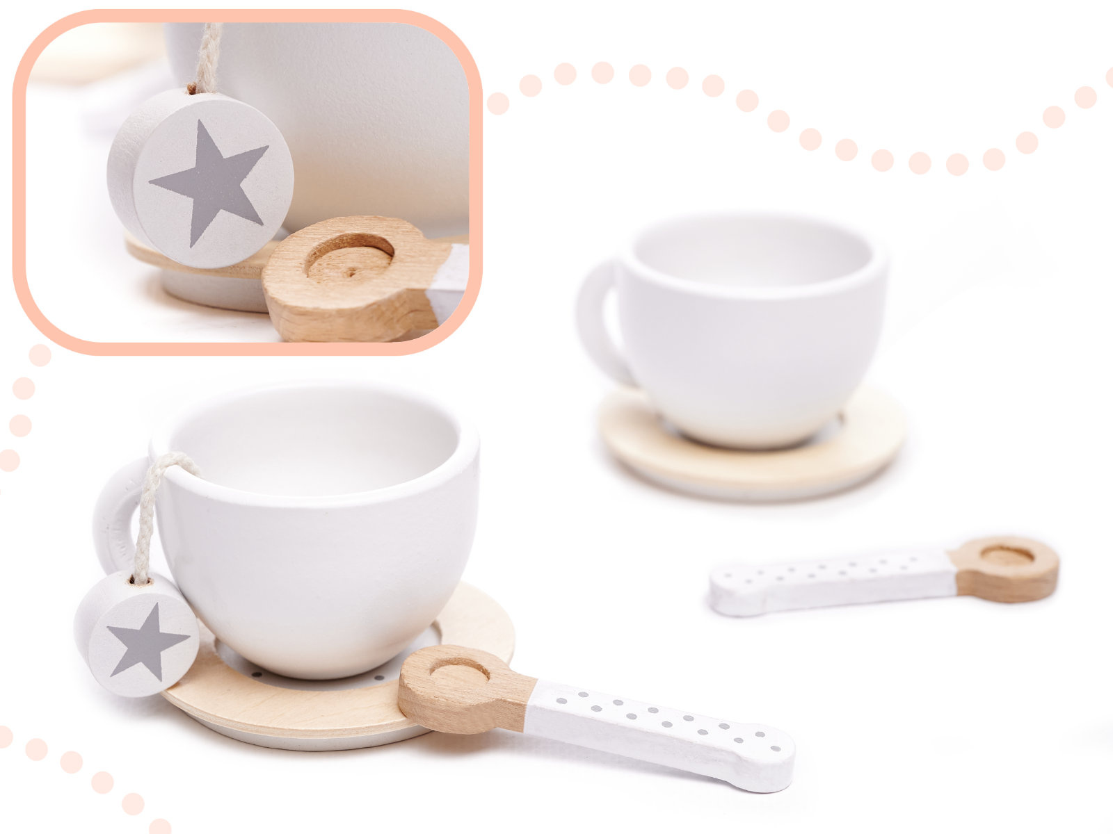 Senzační čajová souprava je praktickým doplňkem každé domácnosti. Po splnění svých povinnosti si můžeš posedět s kamarádkami nebo se svou panenkou u šálku dobrého čaje a popovídat si, co každá dnes zažila. Souprava je vyrobena ze dřeva a skutečně imituje skutečnou čajovou soupravu.