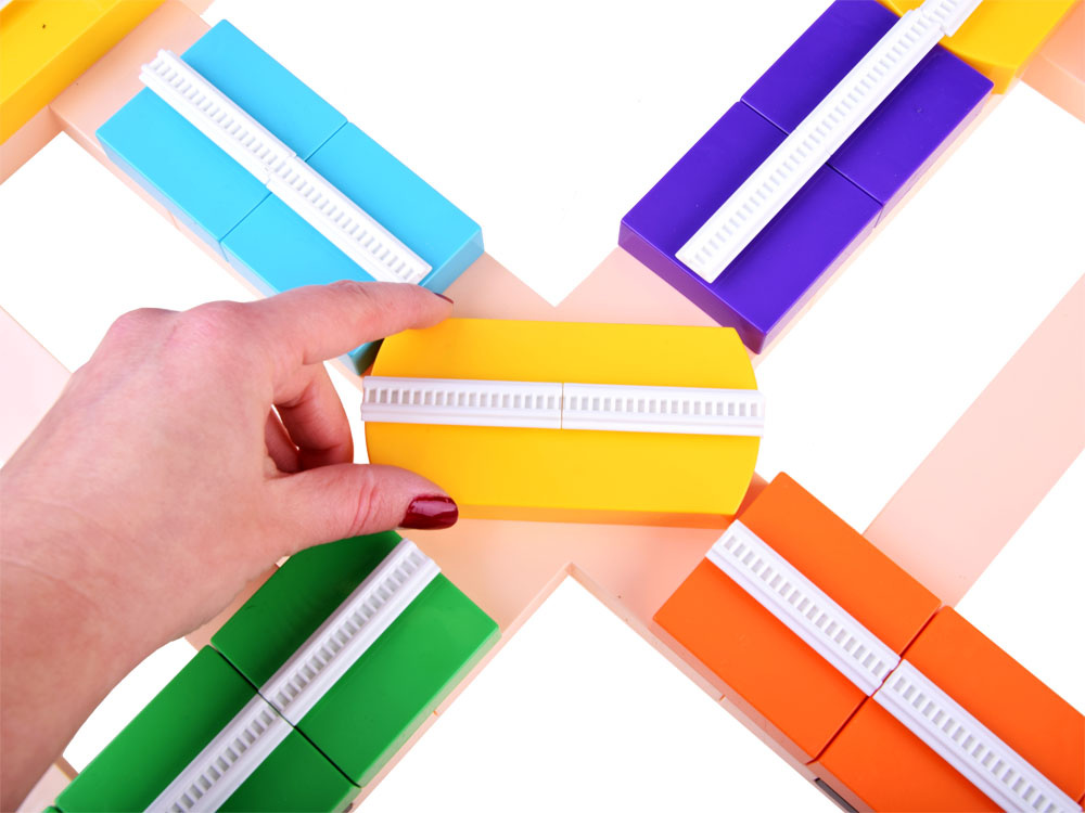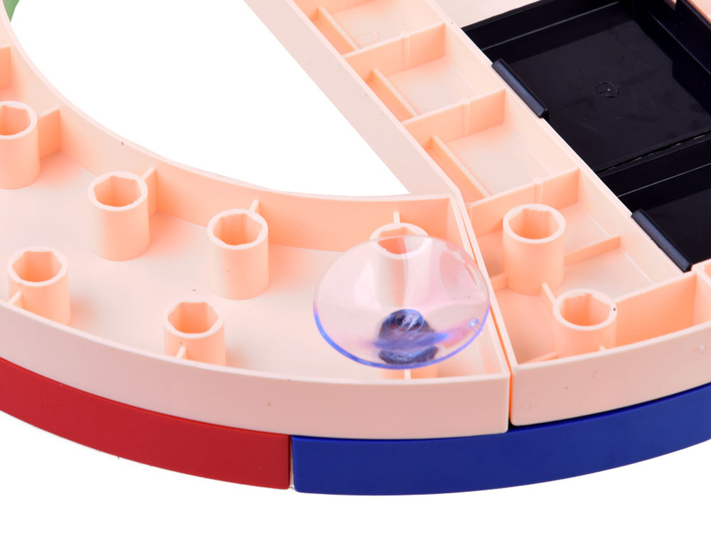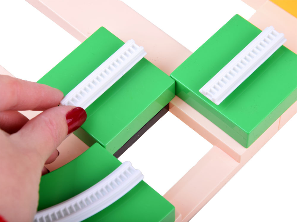 Pro sestavení dráhy použijte barevný obrázkový návod, který je součástí stavebnice. Zábavné je sestavit trasu, umístit na ni vozidlo v kolejích a dát ho do pohybu. Auto se pohybuje po dráze a během jízdy můžete měnit jeho směr pohybem bloků. Když se blok včas neotočí, auto se zastaví, ale nespadne z dráhy. Autíčko se může pohybovat vodorovně, ale bez problémů se může pohybovat i svisle nahoru a dolů, pokud dráhu přilepíte k hladkému povrchu pomocí přísavek (např. šachty), které dětem poskytují úžasné atrakce.