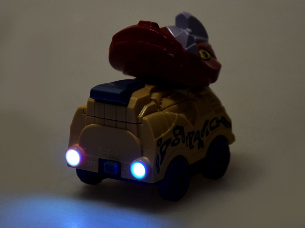 Auto je napájeno 2 bateriemi, pro nasazení je třeba odepnout šedý ocas, vyšroubovat šroub a umístit baterie dovnitř vozidla. Vůz má dvě rychlosti, které se přepínají tlačítkem na zadní straně vozidla. Během jízdy za sebou svítí barevnými světly.