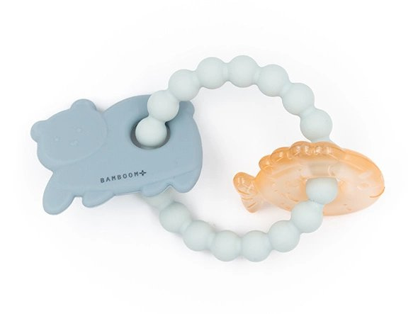 Silikonové kousátko Bamboom vyrobené ze 100% bezpečného silikonu. Kousátko masírující dásně pro děti má zábavného visícího silikonového medvídka. Neobyčejná hračka a zároveň kousátko, které uleví od bolesti dásní během prořezávání zoubků. Skvělý také jako dárek pro holčičku.