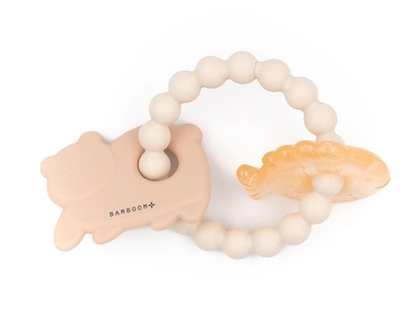 Silikonové kousátko Bamboom vyrobené ze 100% bezpečného silikonu. Kousátko masírující dásně pro děti má zábavného visícího silikonového medvídka. Neobyčejná hračka a zároveň kousátko, které uleví od bolesti dásní během prořezávání zoubků. Skvělý také jako dárek pro holčičku.
