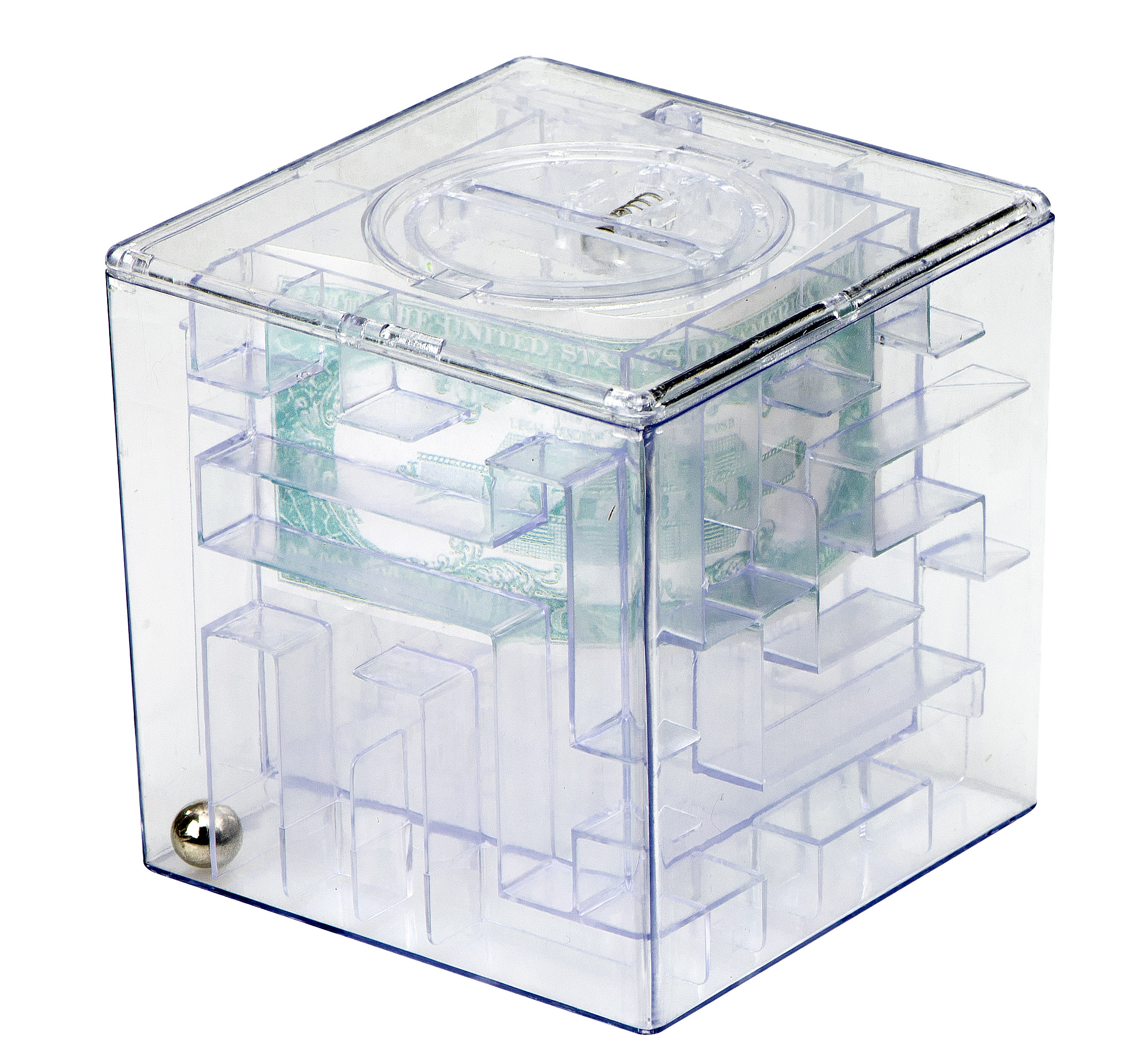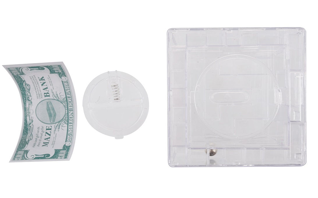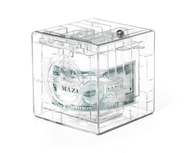 Senzační 3D pokladnice s bludištěm. Perfektní pomůcka pro ty, kteří se snaží ušetřit peníze. Abyste peníze z prasátka dostali, musíte nejprve překonat překážkovou dráhu.