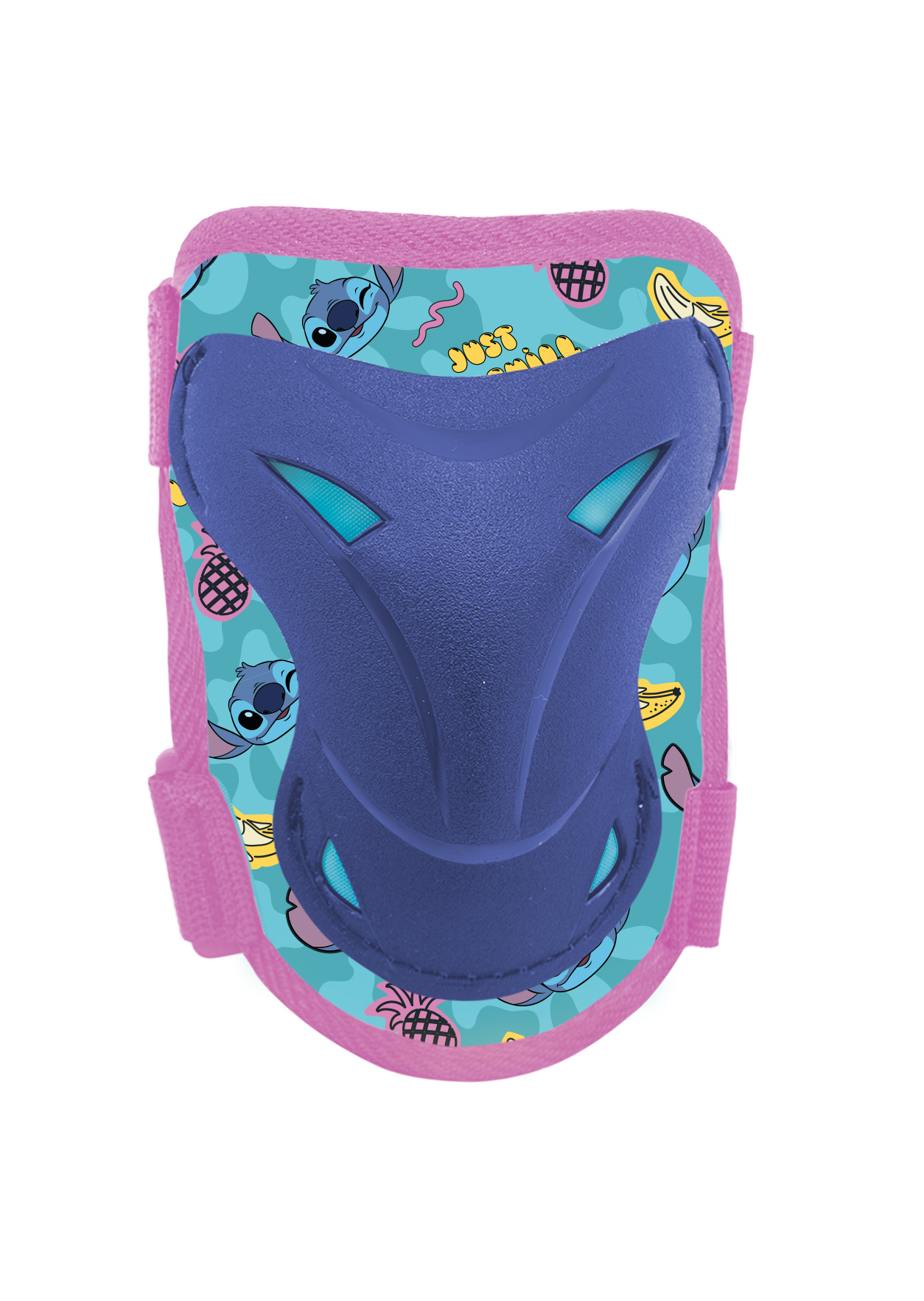 Anatomicky tvarované chrániče jsou navrženy pro děti při používání bruslí, kolečkových bruslí, skateboardů, koloběžek atd. Vyrobeno z odolných materiálů, zdobeno postavičkami Stitche. Chrániče jsou navrženy tak, aby snižovaly riziko zranění při pádu. Výrobek splňuje normu EN14120:2003+A1:2007.