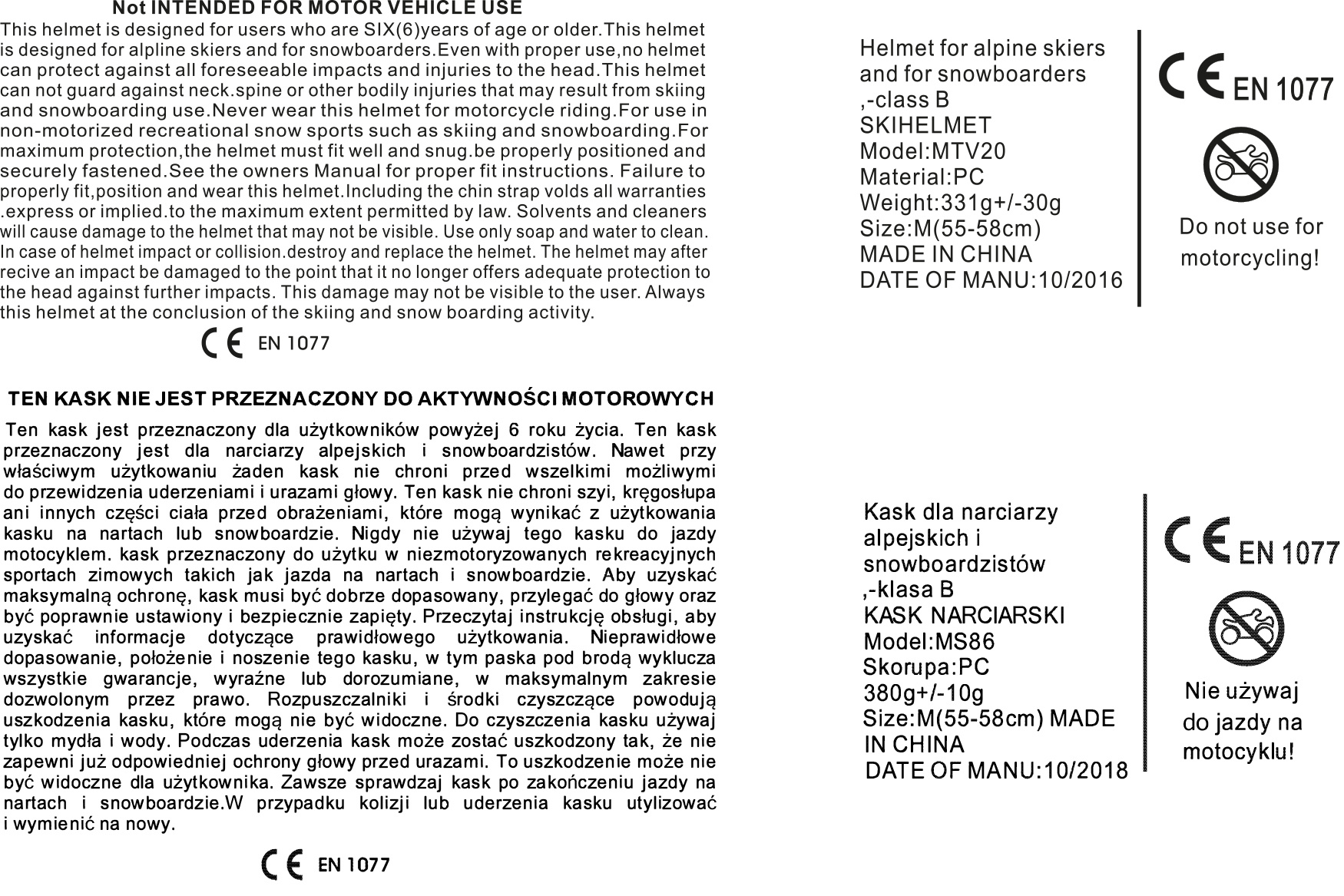 NENÍ URČENO PRO POUŽITÍ V MOTOROVÝCH VOZIDLECH. Tato helma je navržena pro uživatele, kteří jsou ve věku ŠEST (6) let nebo starší.Tato helma je navržena pro alpské lyžaře a snowboardisty.