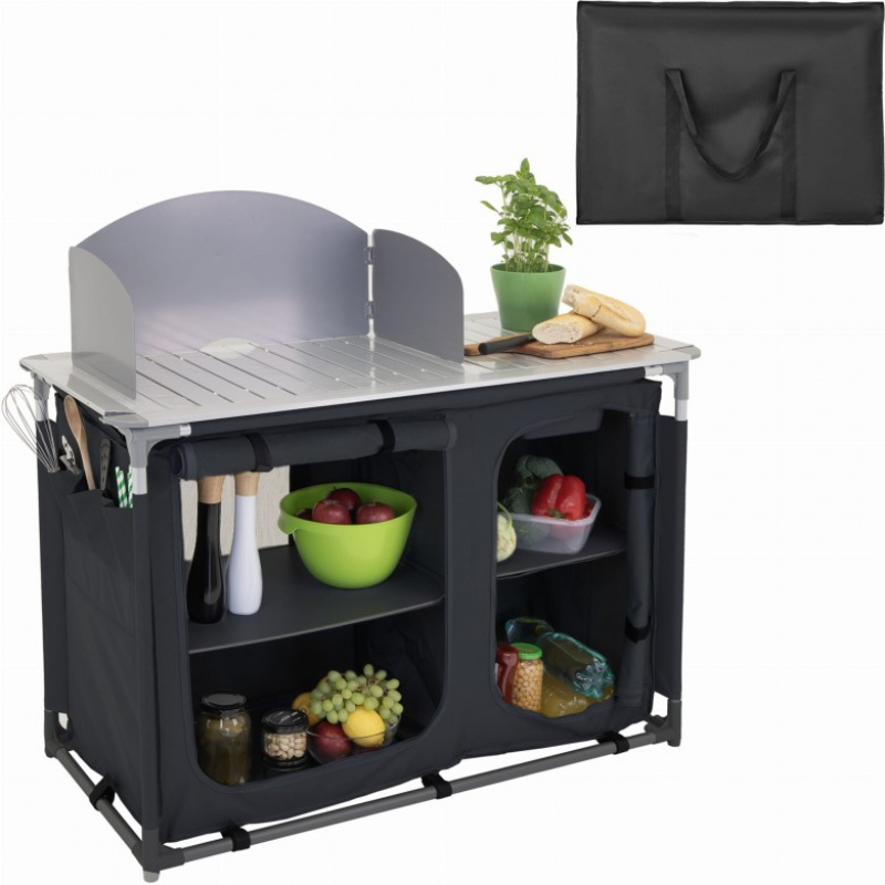 Nespornou výhodou je možnost složení skříňky do kufru a malé rozměry, což umožňuje bezproblémovou přepravu a skladování mimo sezónu. Spojuje v sobě vynikající funkčnost s moderním designem. To snadno udržovatelný kempingový nábytek Zajišťuje stabilitu a snadno se přizpůsobuje podkladu Je velmi snadno čistitelný, což znamená, že s malým úsilím a časem bude nábytek neustále zářit jako nový. Po složení se stávám velmi malým a pohodlným kufříkem.